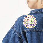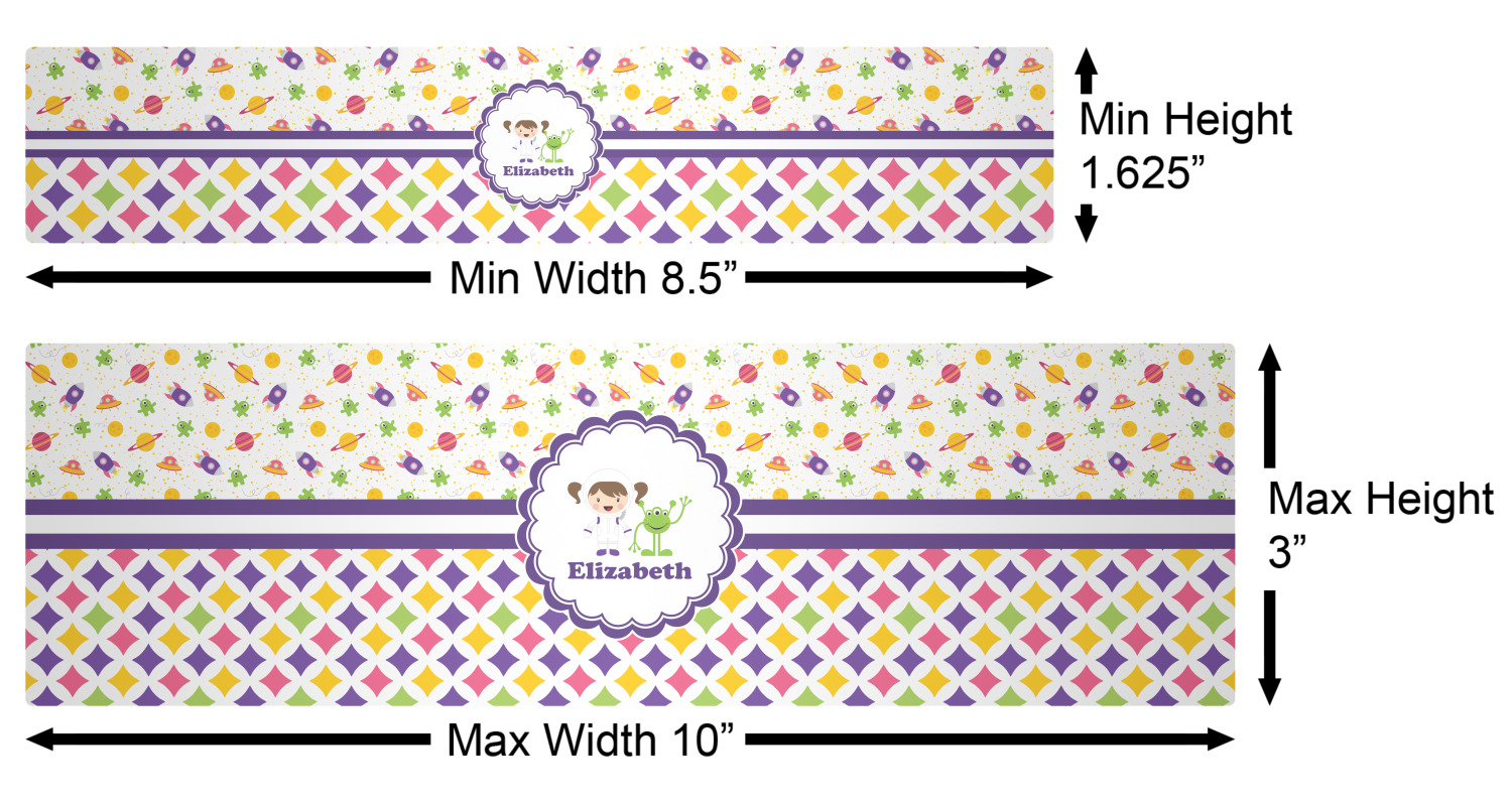 A wide white band trimmed in purple highlights the scallop label showcasing the little girl and her favorite martian personalized with your little one's name.