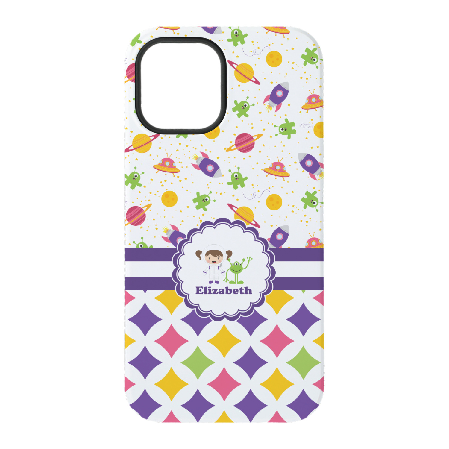 Girls love space exploration too. We have used our popular space design full of little green martians, purple and pink spaceships, yellow and pink planets, and yellow stars galore and paired it with a whimsical diamond pattern using coordinating colors.