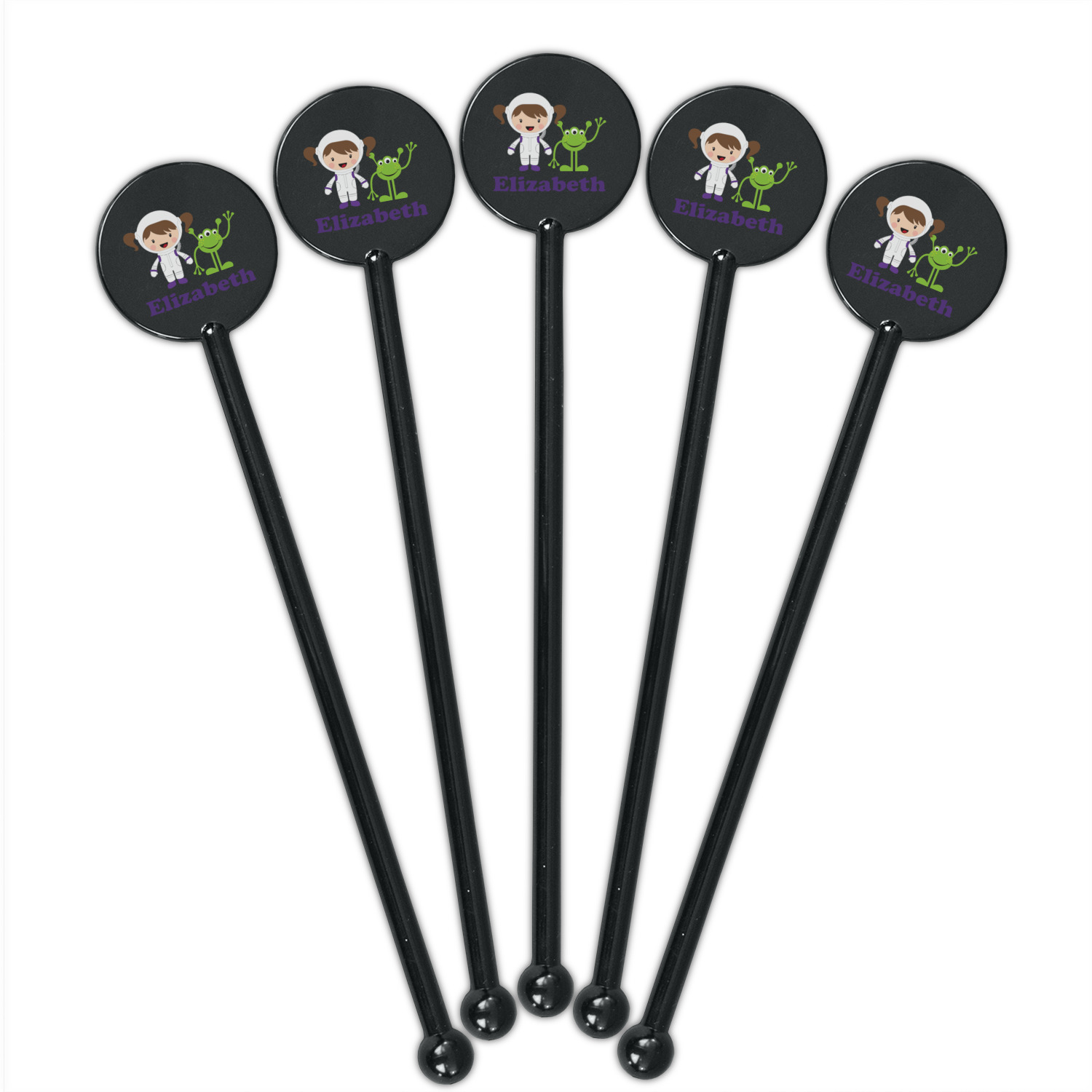 Shape + Symbol Designs for 5.5" Round Plastic Stir Sticks - Black - Single-Sided