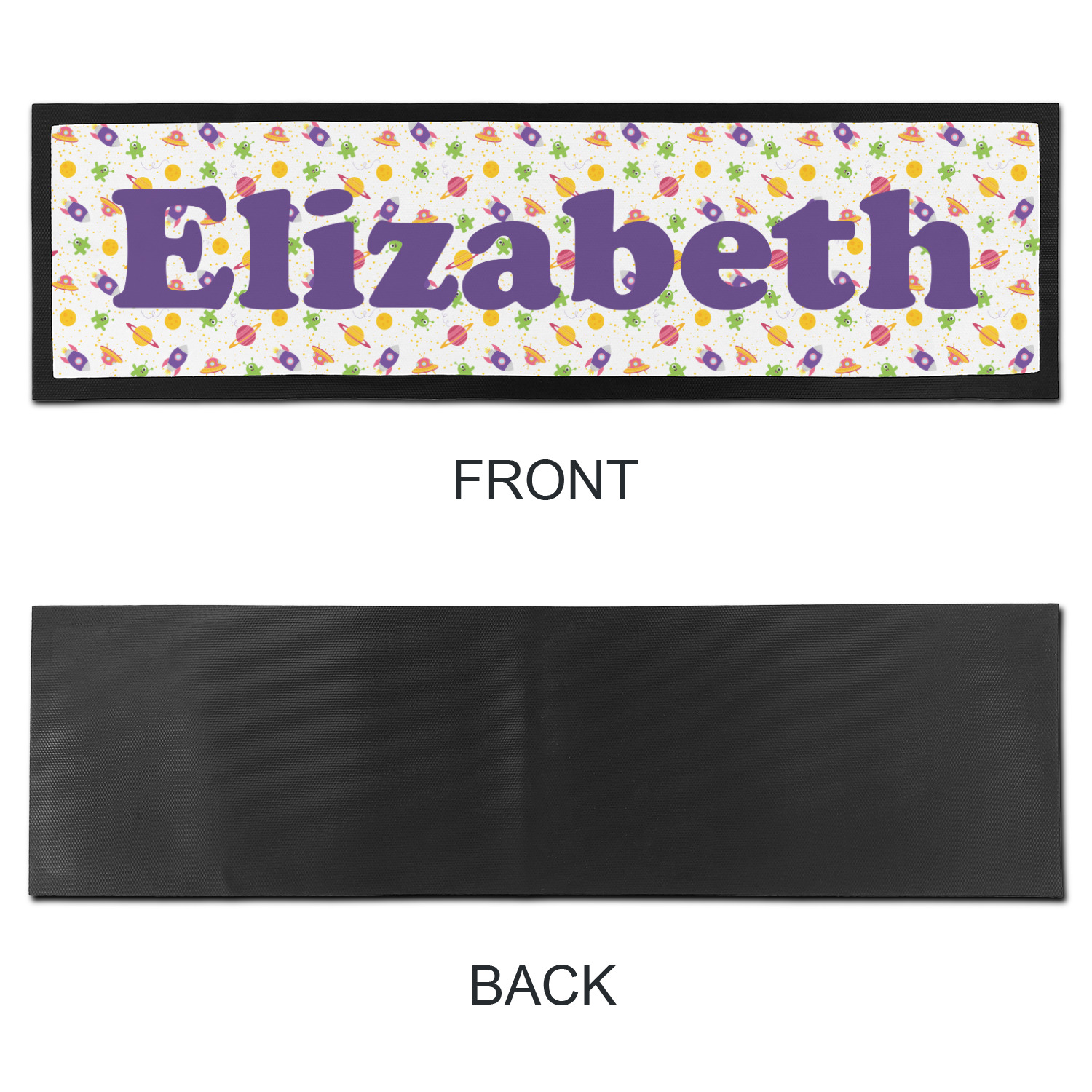 This pattern is very versatile and will mix and match with a variety of coordinated colors. A wide white band trimmed in purple tie it all together showing off little favorite personalized space girl and her favorite martian.