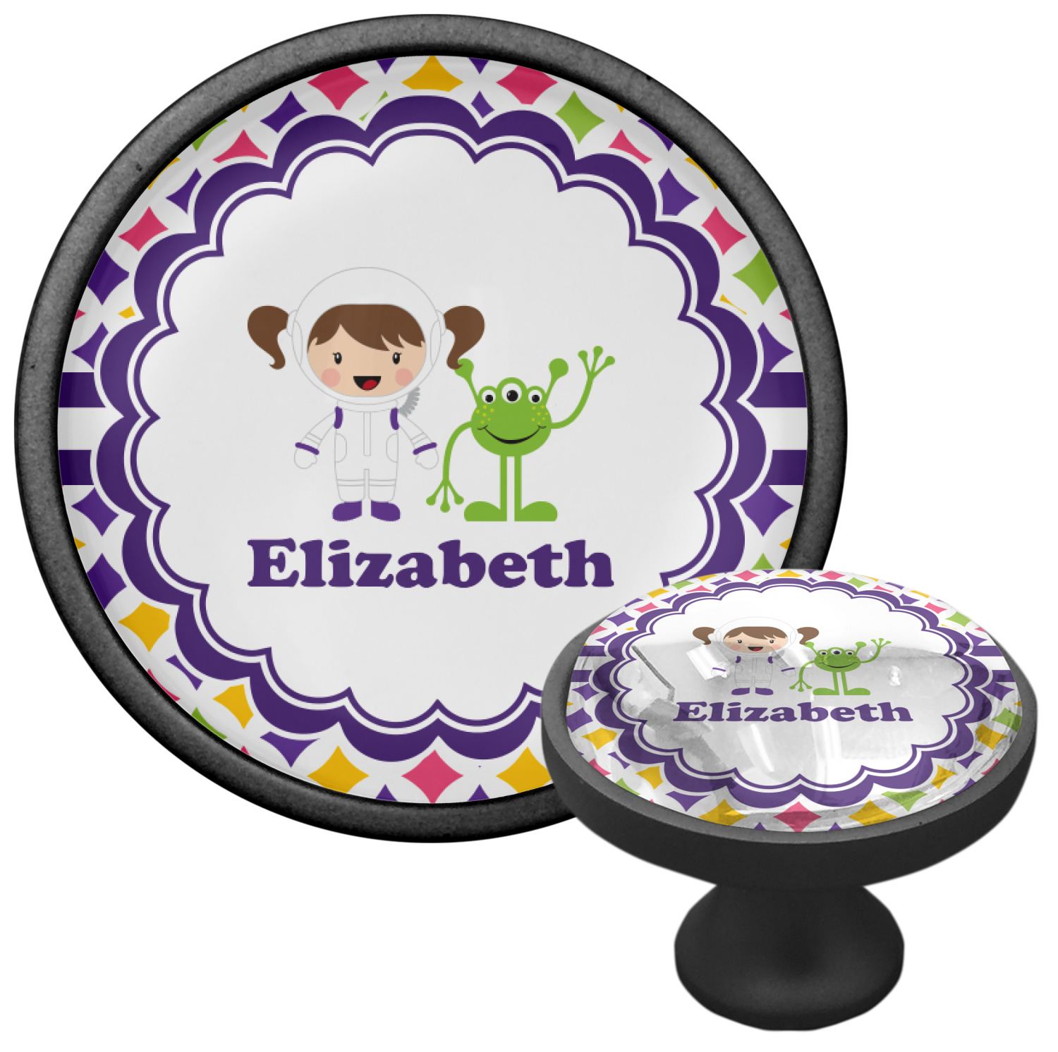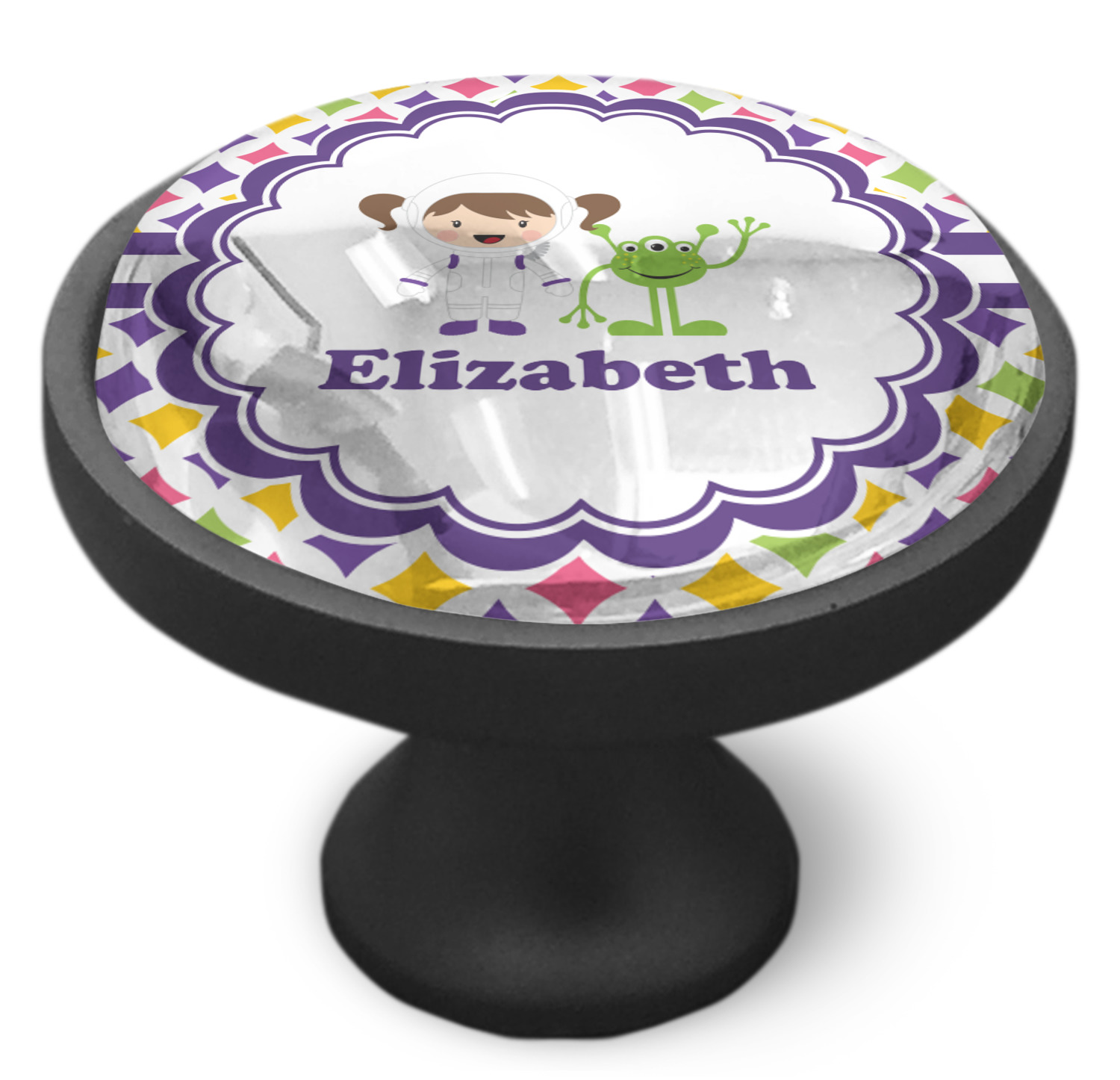 We sell these cabinet pulls in two different colors to better match your room's color scheme. We offer an oil-rubbed bronze base that is black in color, and a satin nickel option, which has a silver color. Your design is displayed across a high gloss vinyl insert that is placed on top of these cabinet handles. We then place a 1 inch thick glass cabochon atop the design, which seals the cabinet knob and makes the colors of your customization stand out. These custom cabinet knobs are approximately 1.3 inches in diameter. Your purchase includes a 1 inch screw that can be used to mount the knob to any cabinet in your home.