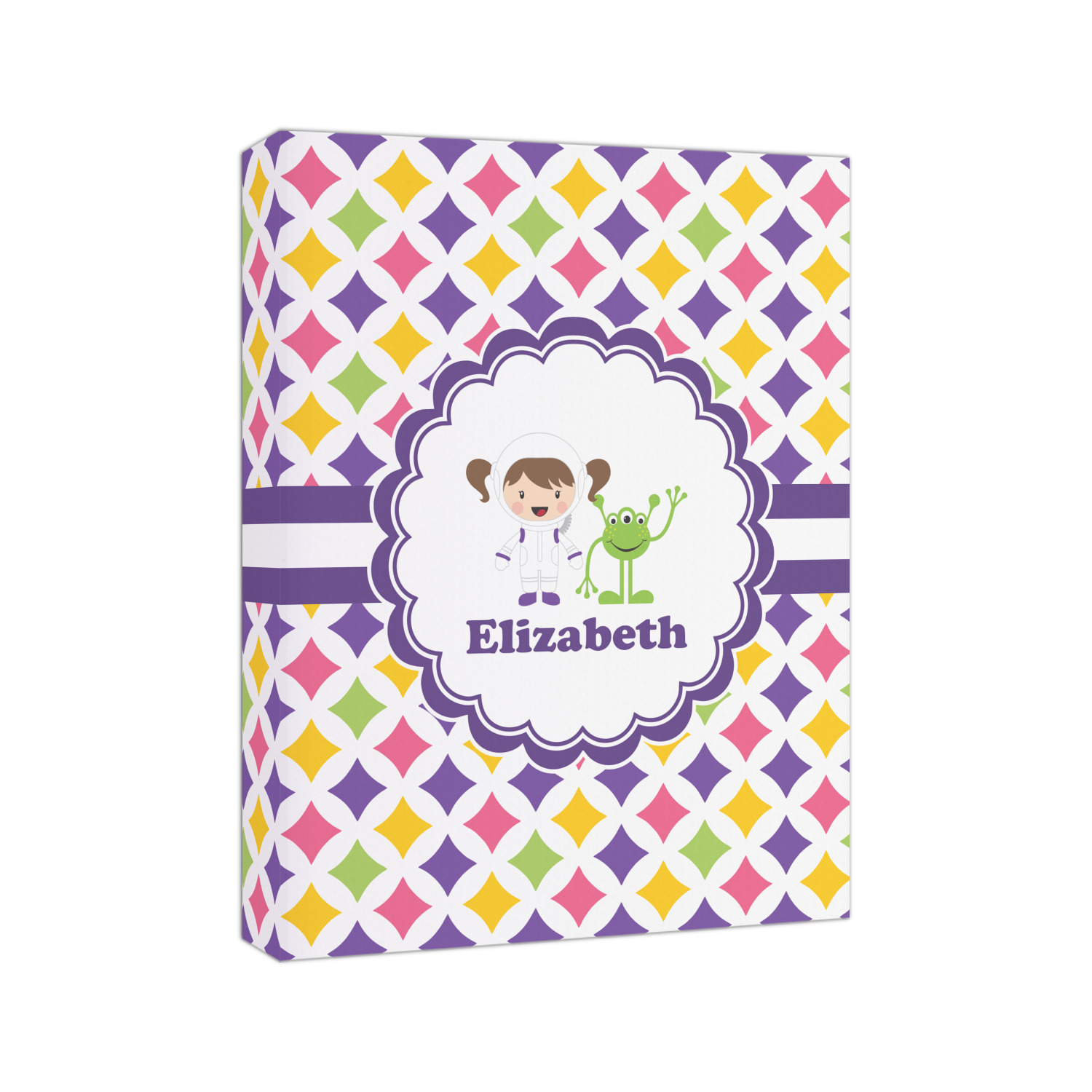 This pattern is very versatile and will mix and match with a variety of coordinated colors. A wide white band trimmed in purple tie it all together showing off little favorite personalized space girl and her favorite martian.