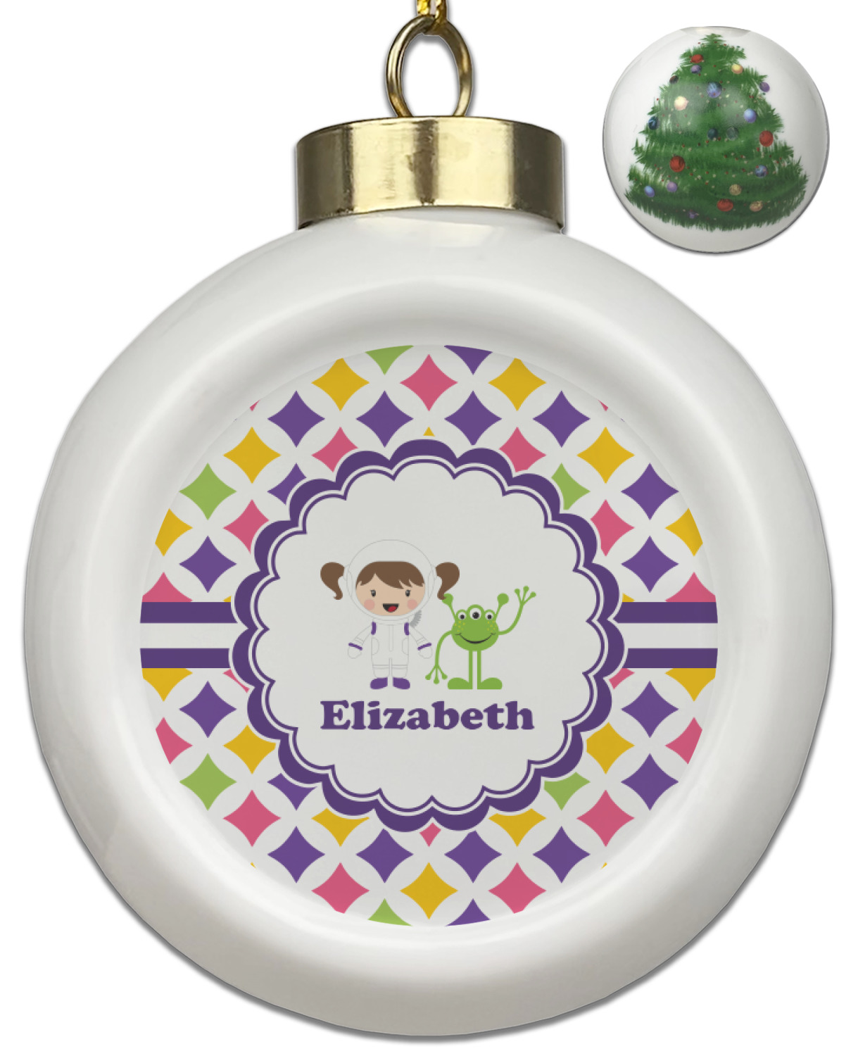 Our Christmas ornaments are a unique ceramic ball shape with a twist as it has a flat face to display your custom design! Select from one of our two design types - Christmas Tree or Poinsettia Garland - to adorn the curved back of your personal design. Each ornament measures 3H x 2.5W x 2D accompanied with a gold string accent for finishing touches to hang on your beautiful Christmas tree!