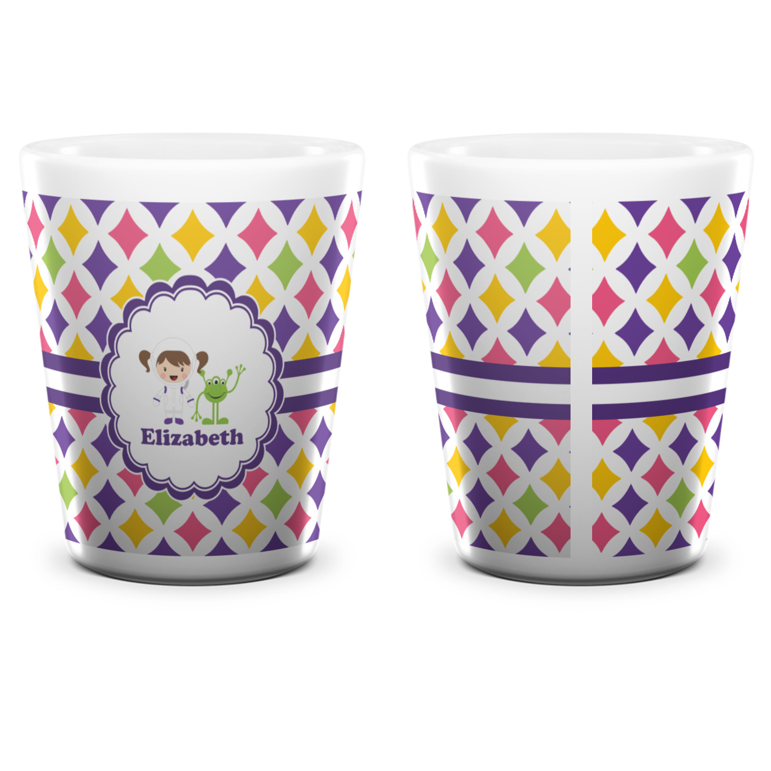 Made from ceramic these shot glasses are printed in full color with the design of your choice. These are a standard 1.5oz size and stand 2.25" tall. Available in a full white ceramic or a two-tone with a black color inside the shot glass. Buy a single or a set of 4, all of which can be designed separately to get you just what you want and need.