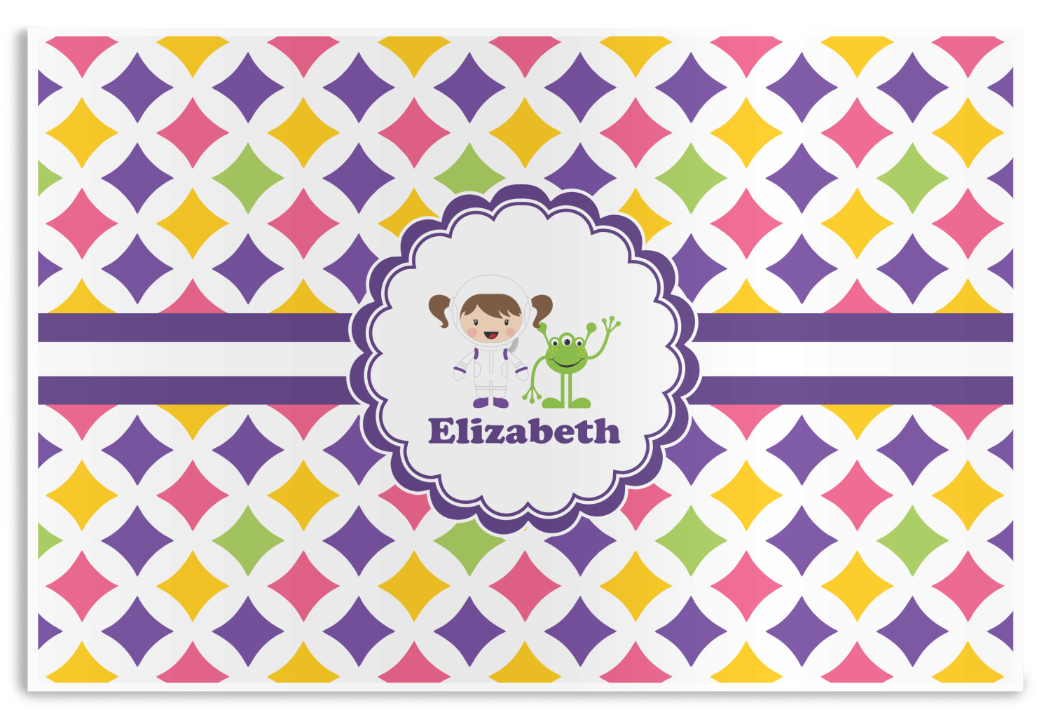 This pattern is very versatile and will mix and match with a variety of coordinated colors. A wide white band trimmed in purple tie it all together showing off little favorite personalized space girl and her favorite martian.