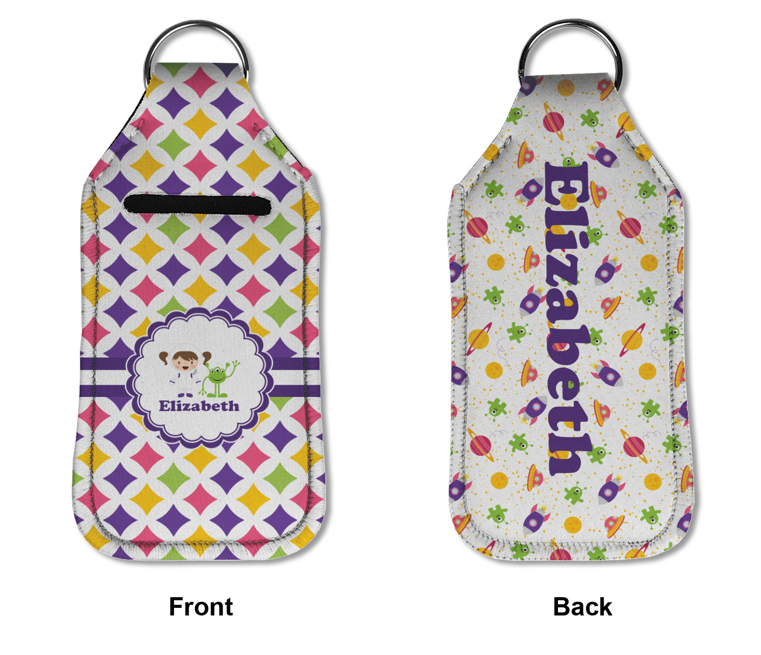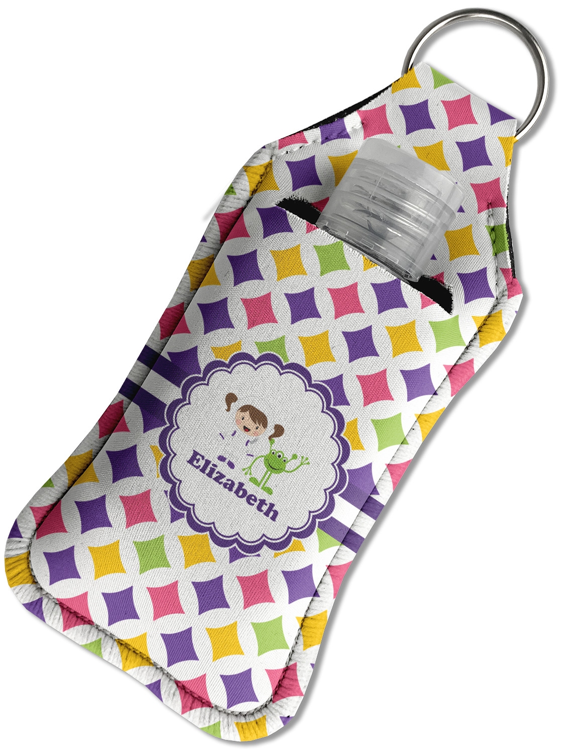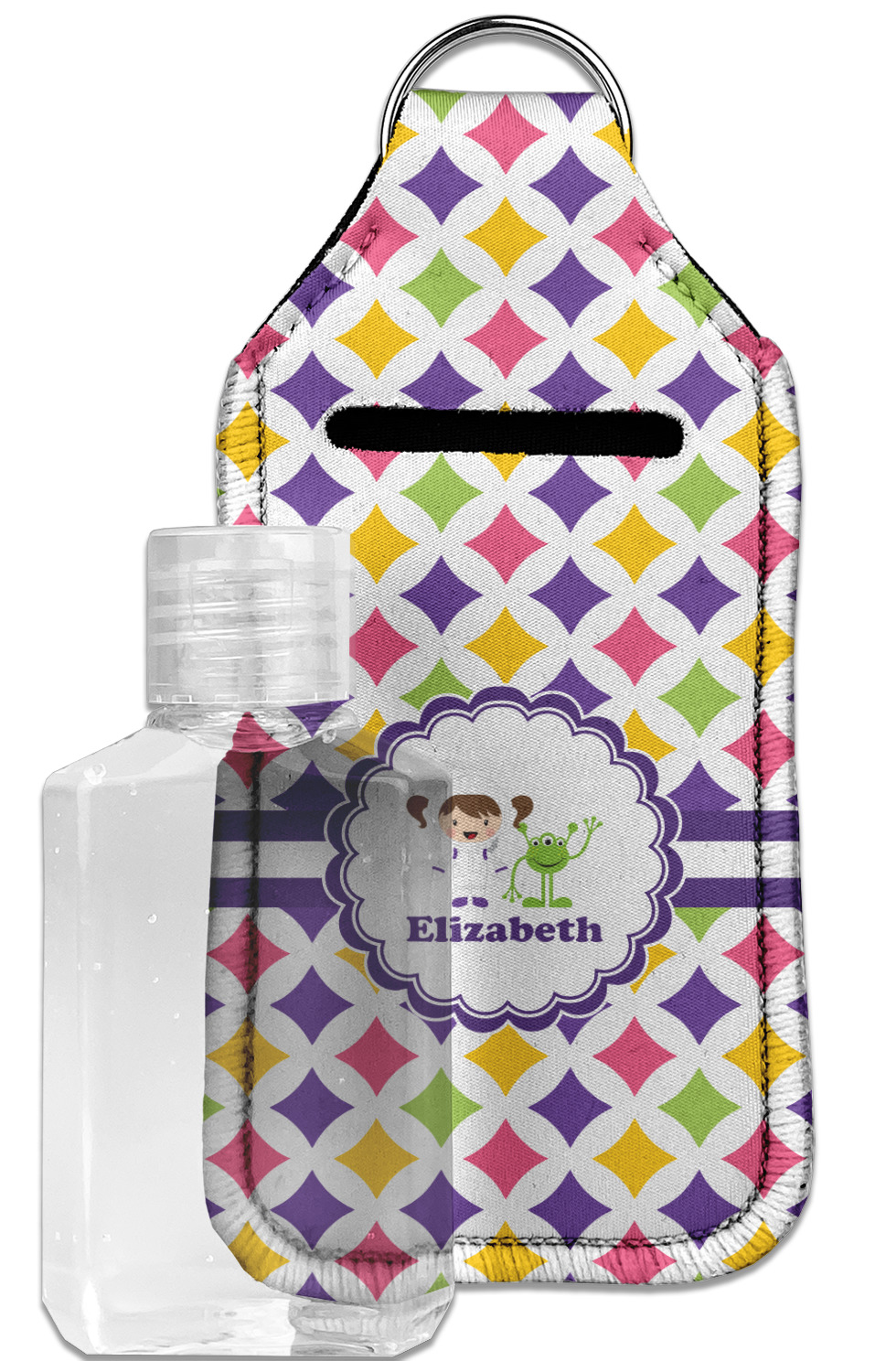 Each hand sanitizer holder comes with its own empty travel-sized, refillable hand sanitizer sure to fit snug in your customized sanitizer case! Our hand sanitizer cases are a durable, yet soft neoprene material sure to last any daily activities or travel agenda. Customize and personalize a hand sanitizer bottle holder with one of our two sizes - small (4.25" x 2.25") or large (5.5" x 2.5"). Each travel sanitizer holder comes with a keyring for attachment on bags, keys, or more!