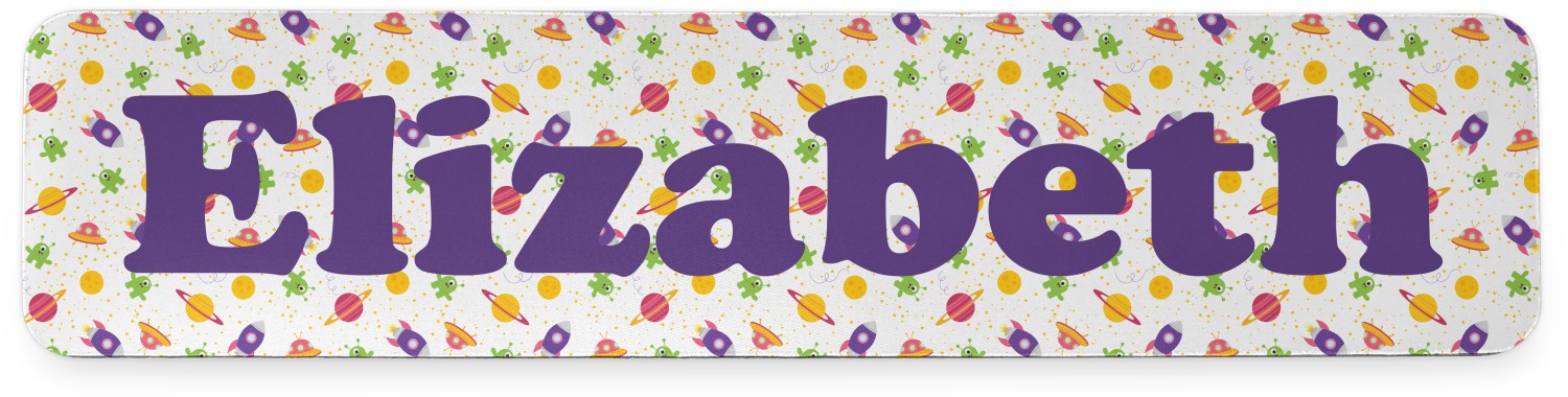 This pattern is very versatile and will mix and match with a variety of coordinated colors. A wide white band trimmed in purple tie it all together showing off little favorite personalized space girl and her favorite martian.