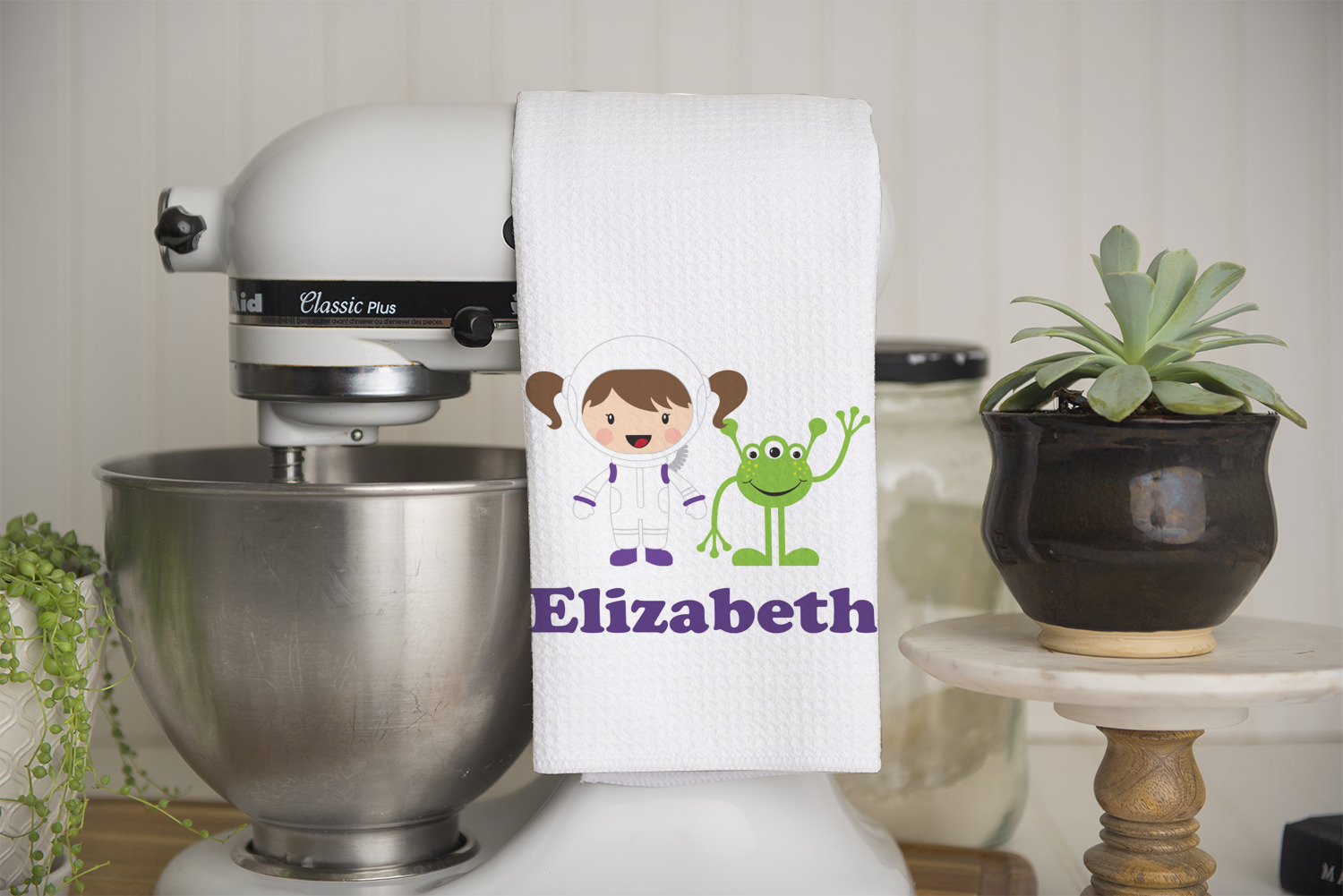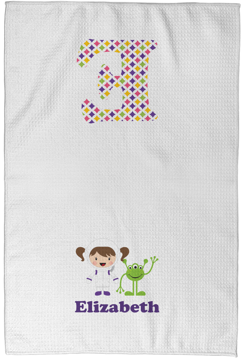 Each waffle weave kitchen towel is approximately 16 x 24 inches with your design printed on one side and the back is white.
