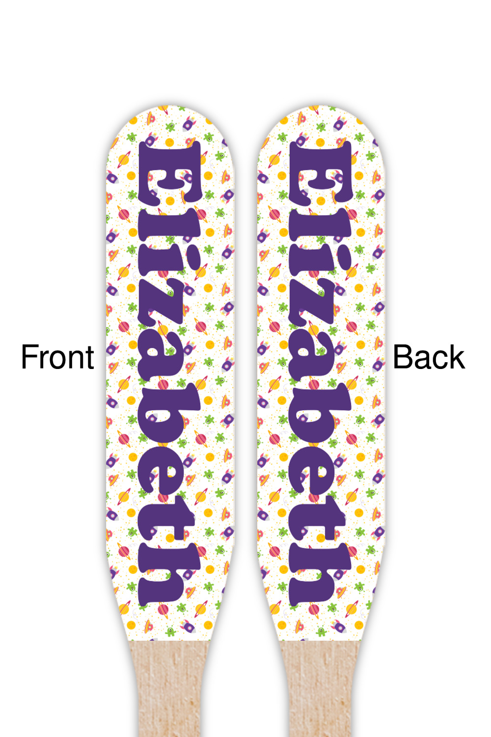 Our paddle style food & drink picks are available in 2 print styles - single sided and double sided.