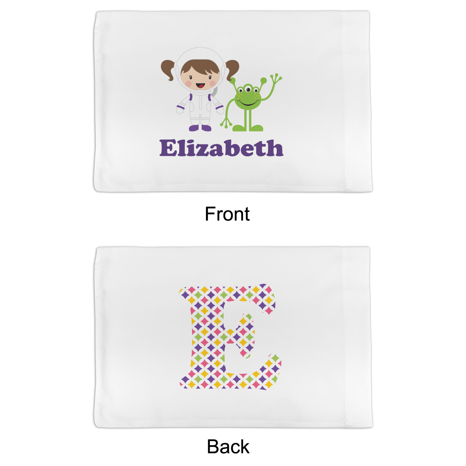 This pattern is very versatile and will mix and match with a variety of coordinated colors. A wide white band trimmed in purple tie it all together showing off little favorite personalized space girl and her favorite martian.