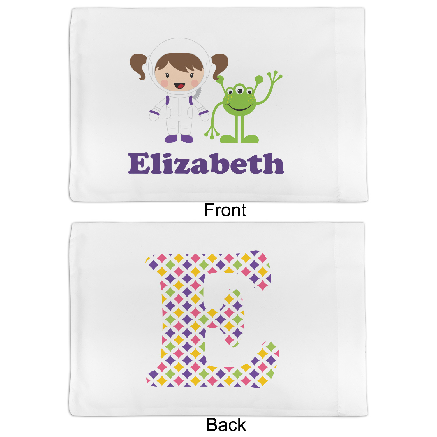 This pattern is very versatile and will mix and match with a variety of coordinated colors. A wide white band trimmed in purple tie it all together showing off little favorite personalized space girl and her favorite martian.