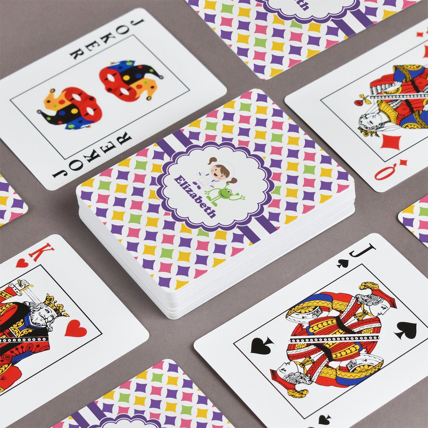 Here at YouCustomizeIt, you can customize your playing cards by uploading your own design, photo, or logo. We have design templates that you can customize by changing the patterns, colors, graphics, personalization styles, etc. - using our free for you to use in our design elements library.