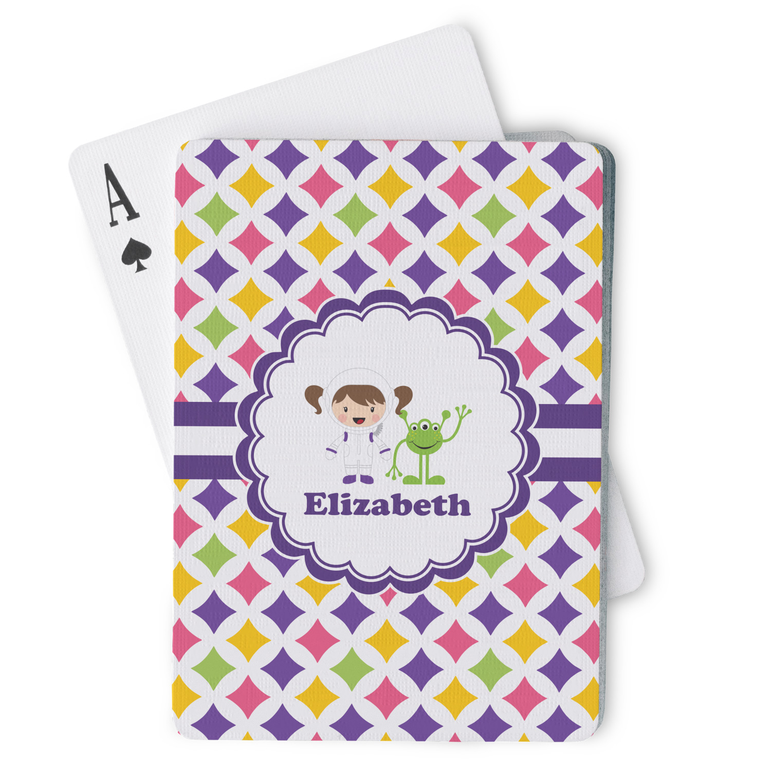 Our playing cards are perfect for family game nights or poker nights. A deck of customized playing cards ups the level of fun & entertainment to your game or poker nights. Imagine playing cards customized to match the theme of your game room, or game night, or that special event, or occasion with gambling tables!