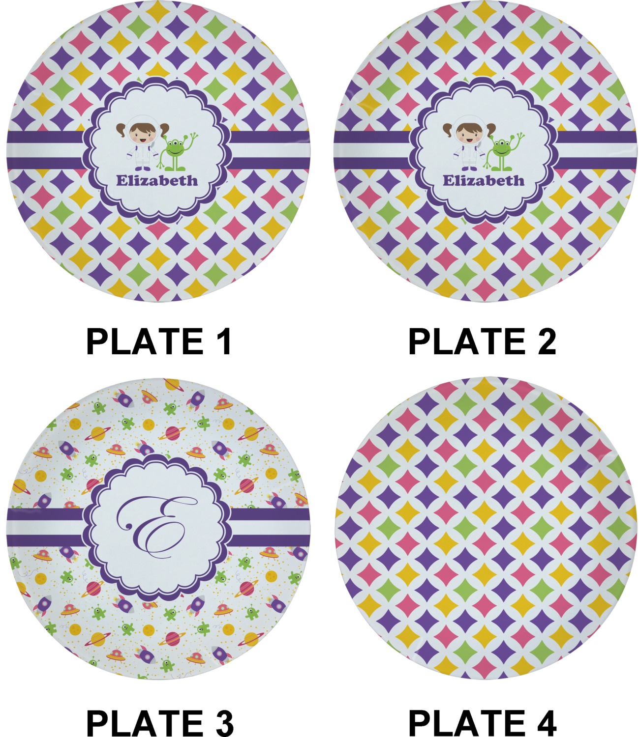 With a of designs and patterns, these plates are completely customizable. Choose a foodie design, complete with red-hot chili peppers, or go classic with stripes or plaid. Include your monogram or family name to make sure these plates never get lost at parties!