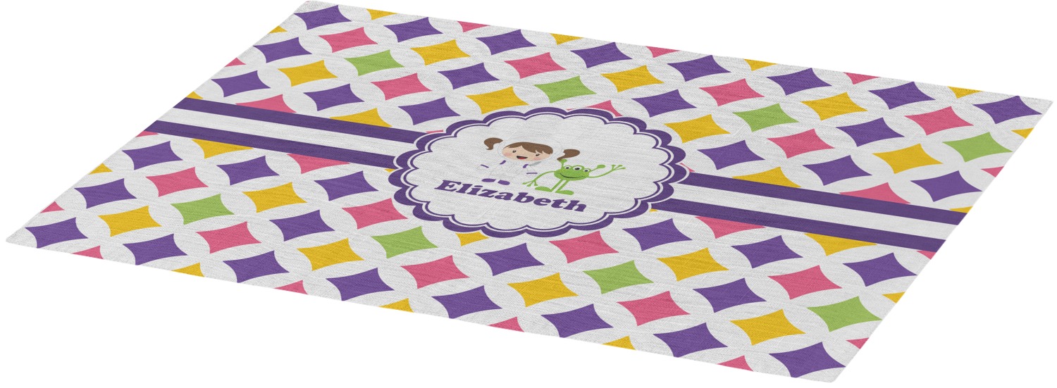 Each of our table mats are a poly twill material with woven burlap detailing. This creates a soft, quality placemat for us to fully print your personalized design across. The woven twill also adds a wrinkle-free surface to set your table! Each customizable placemat is a rectangle shape measuring at approximately 13 x 18 and printed here in the USA.