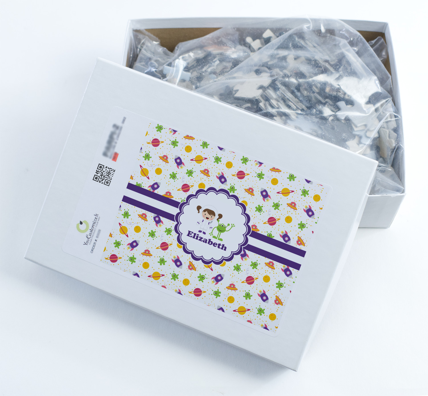 You can also upload your logo or art that you or your kids drew. To create more challenging jigsaw puzzles, you can create a pattern from with your logo or artwork. You can also add other elements such as text or personalization.