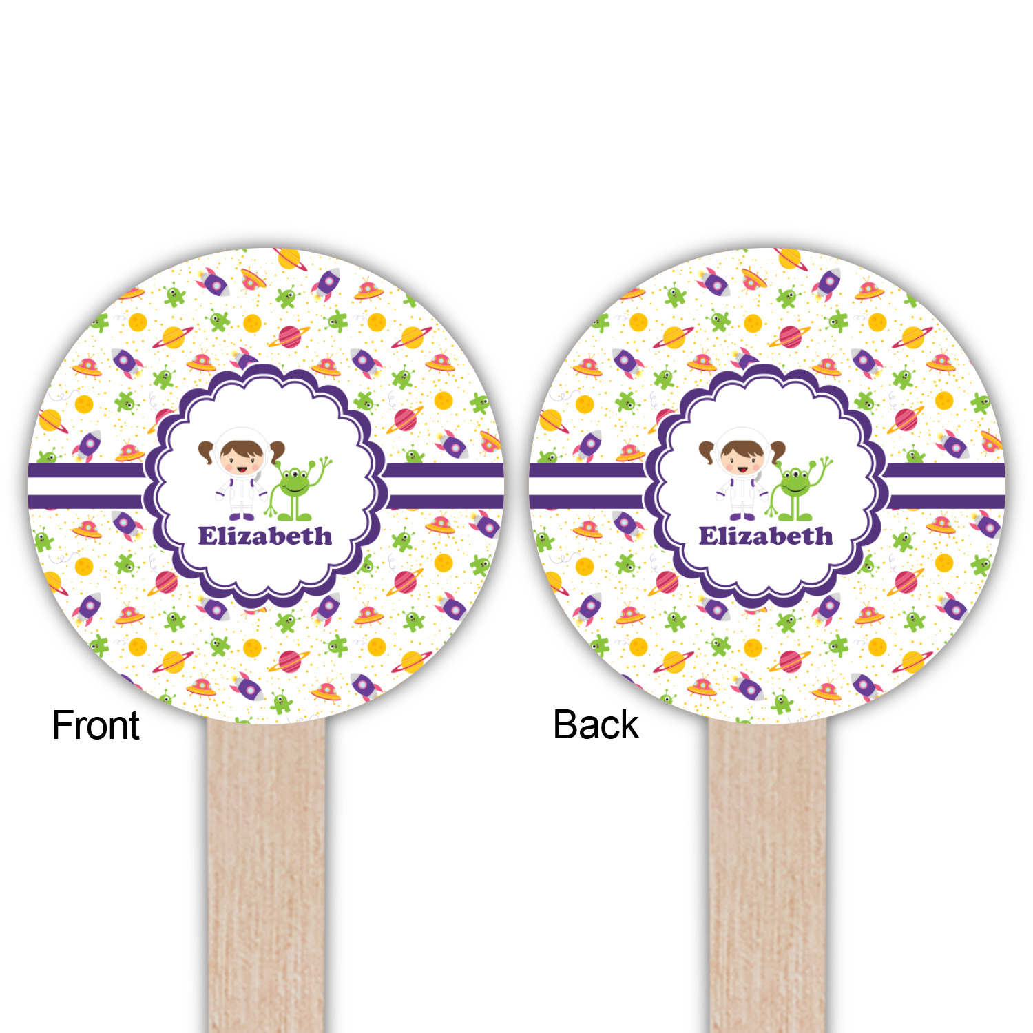 Planets Designs for 6" Round Wooden Food Picks - Double-Sided