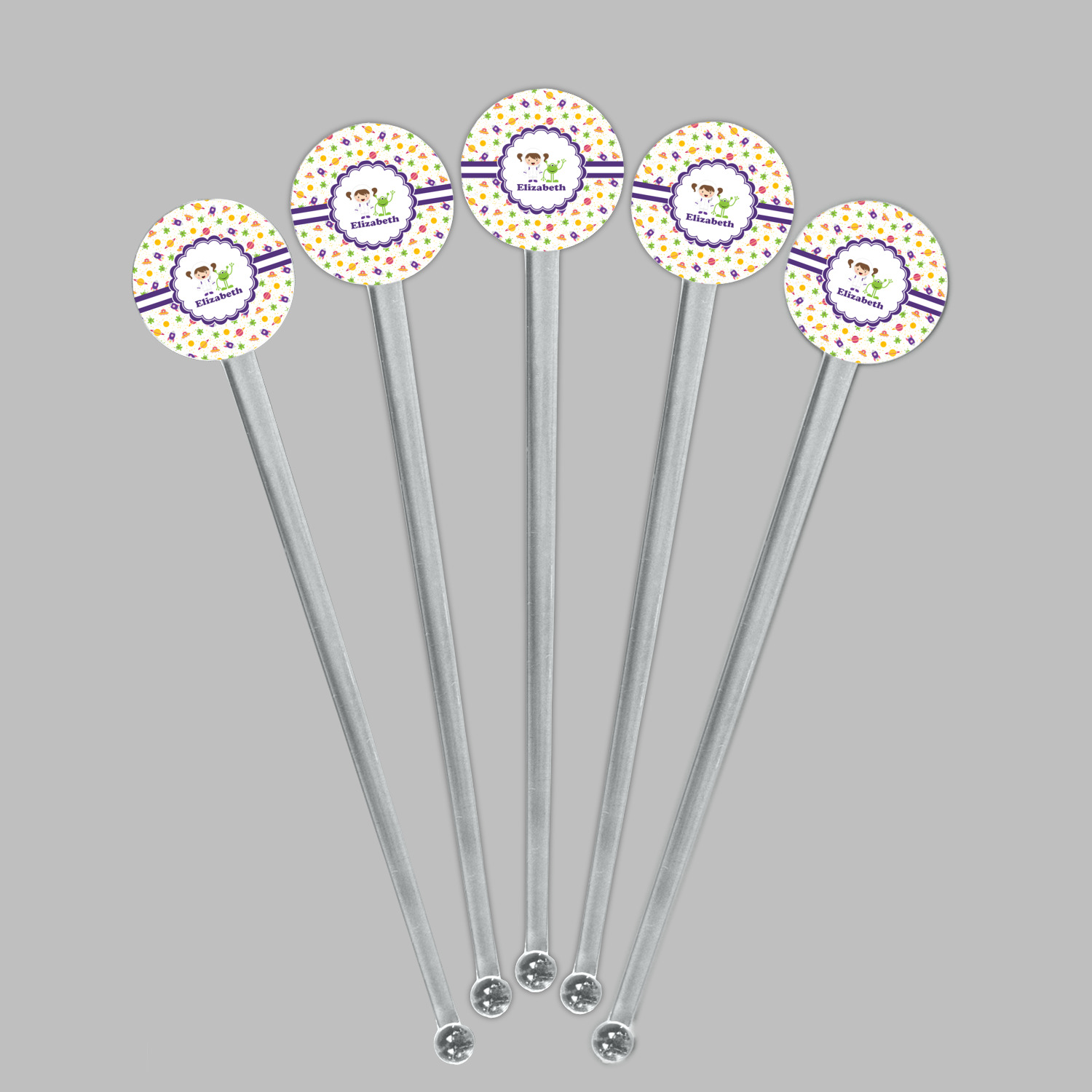 Planets Designs for 7" Round Plastic Stir Sticks - Clear