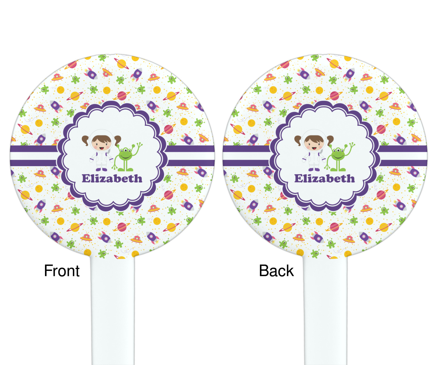 Planets Designs for 7" Round Plastic Stir Sticks - White - Double-Sided