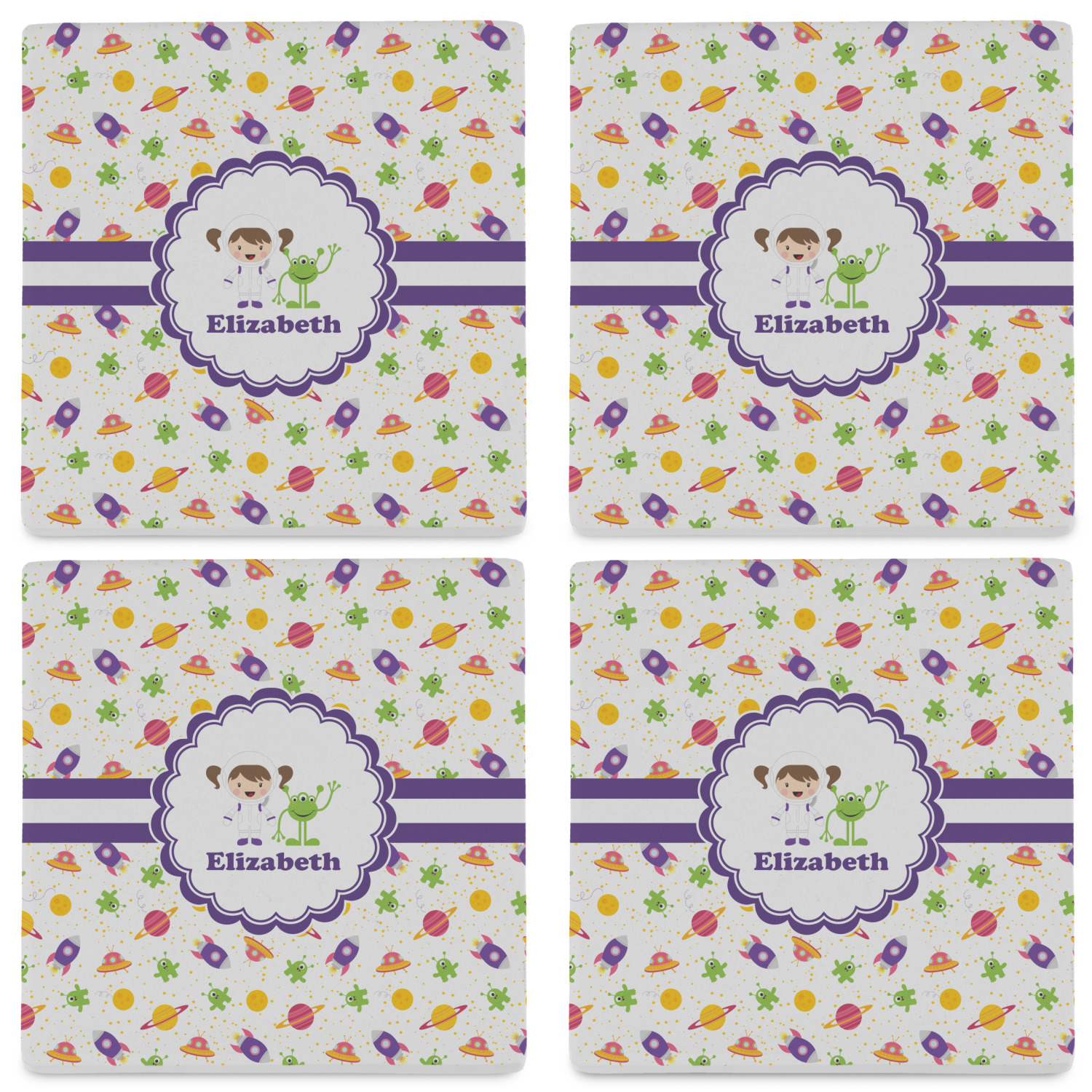 By default, the 4 coasters all have the same design on them, however, you can change that and have a different design on each one of the 4 coasters. The choice is yours.