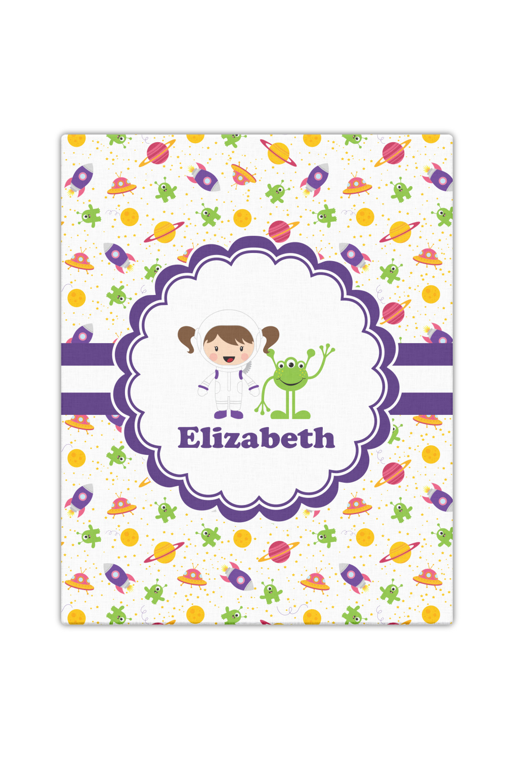 Explore another galaxy with this whimsical space design. Fun colors of yellow, pink, purple, and green make this design of space exploration come alive. The design is full of little green martians, purple and pink spaceships, yellow and pink planets, and yellow stars galore.