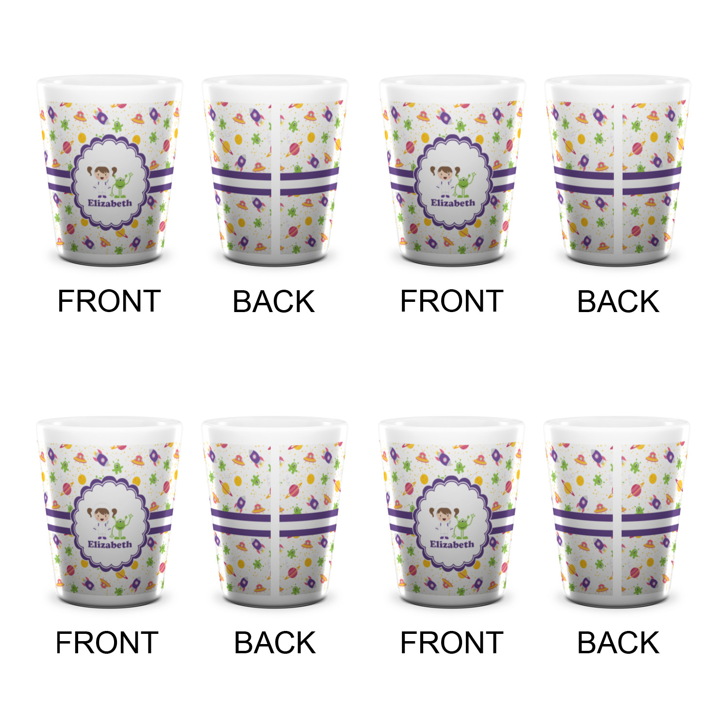 Planets Designs for Ceramic Shot Glasses - 1.5 oz - White - Set of 4