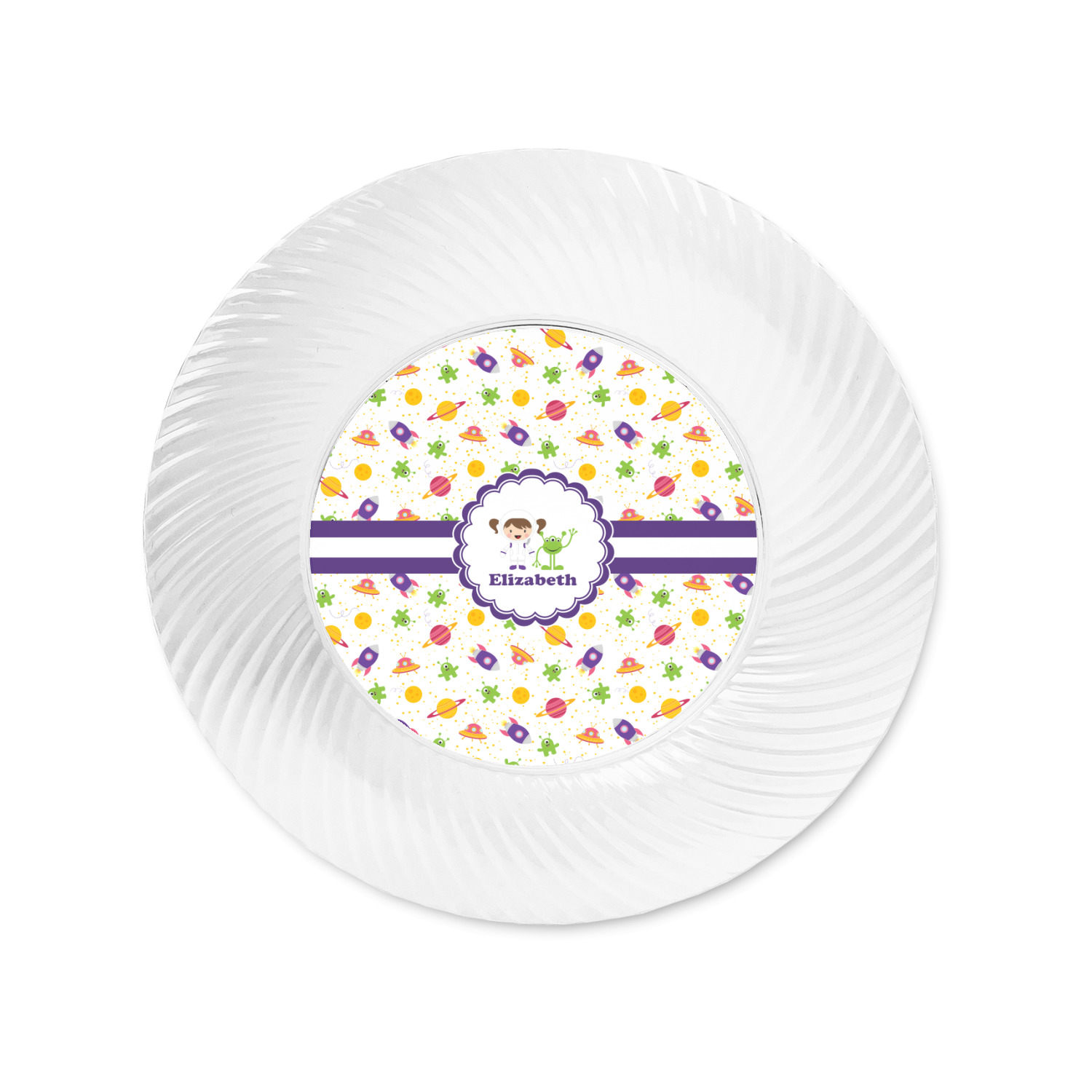 Made from a beautiful clear plastic plate as a base, your design is printed to the underside of the plate. The outside of the plate has a classic swirl texture to it for a high quality look and feel.