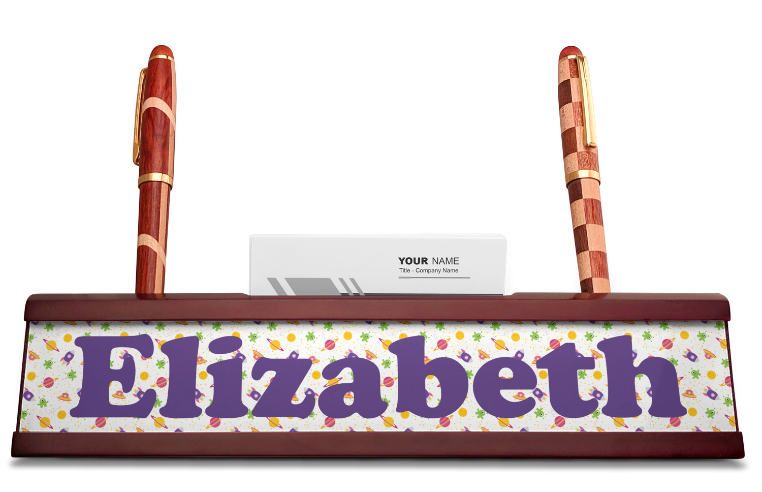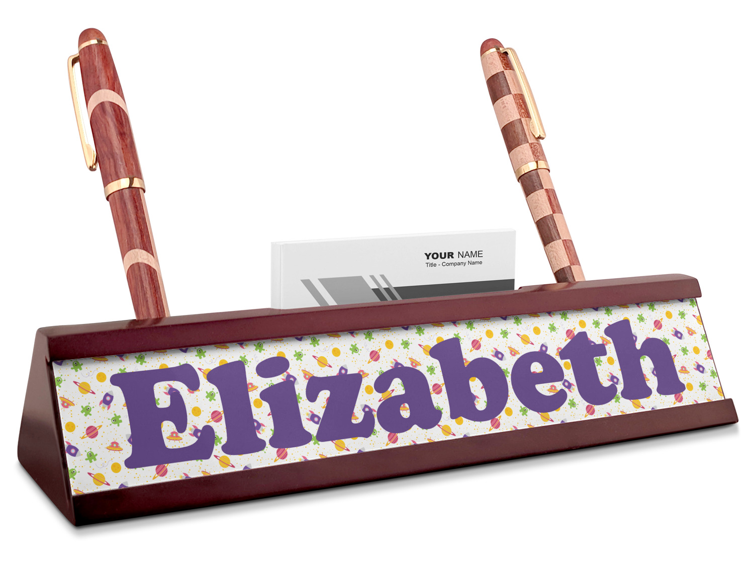 Planets Designs for Red Mahogany Nameplates with Business Card Holder