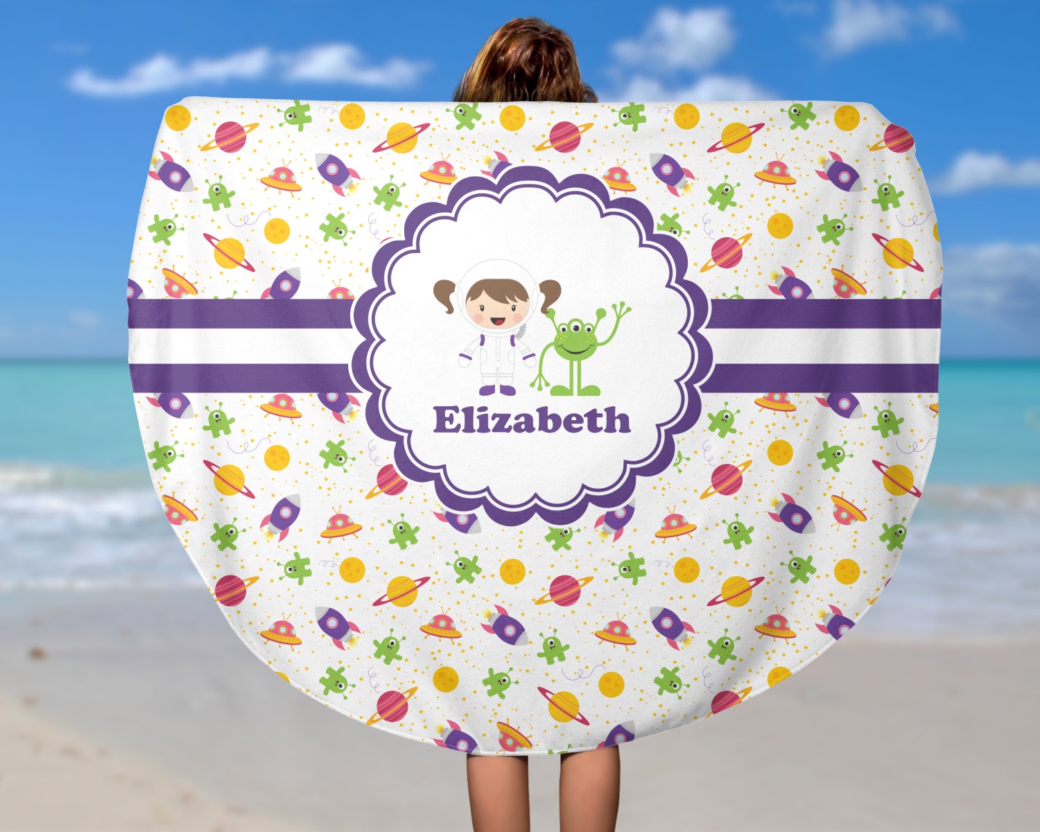 Think out of the box on your next beach, pool, or picnic day in style on your personalized round towel. This must have durable accessory is the perfect size for keeping you, and your possessions out of the sand. Sprawl out in the sun without getting your hands dirty, the unique round design allows for a full range of motion.