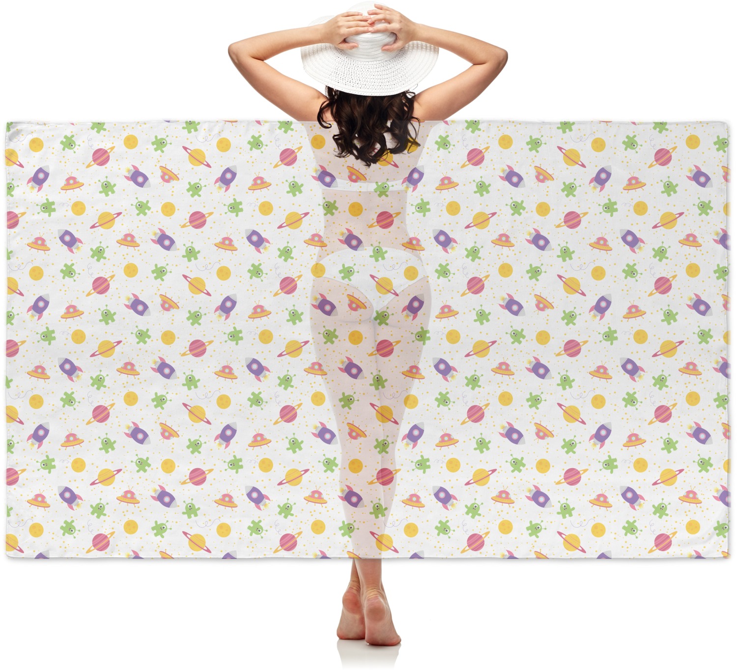 This sarong is a sheer material that can be made fabulous in so many ways. Tie it up over your whole swim suit as a cover-up or tie it around your waist to make a cute cover-up skirt. To top that, show off your style by decorating it with a personalized design!