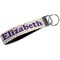 These key fob keychains are made from a polyester weave, right here in the USA. They feature a silver, metal clasp, attached to a round keyring. The piece gives the personalized wristlet a beautiful, finished look. Your customized design is printed on the outside of the keychain strap. We carry these wristlets in two sizes: small, which is 5 inches in width, and large, which is 5.5 inches in width.