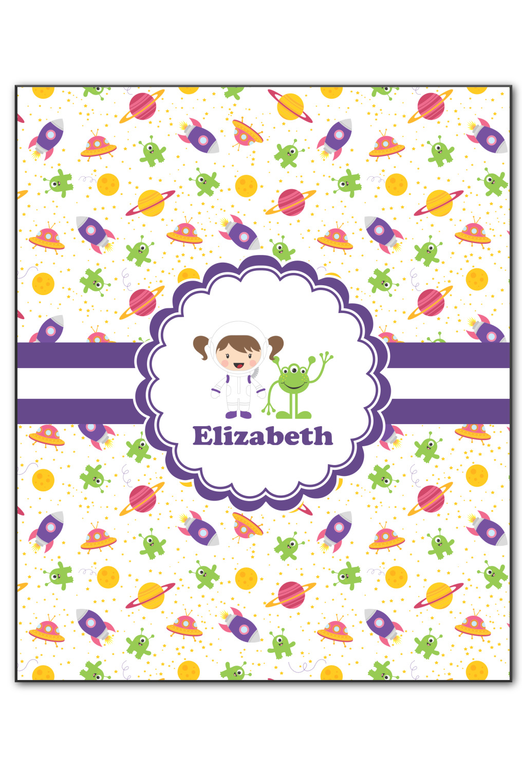 Explore another galaxy with this whimsical space design. Fun colors of yellow, pink, purple, and green make this design of space exploration come alive. The design is full of little green martians, purple and pink spaceships, yellow and pink planets, and yellow stars galore.
