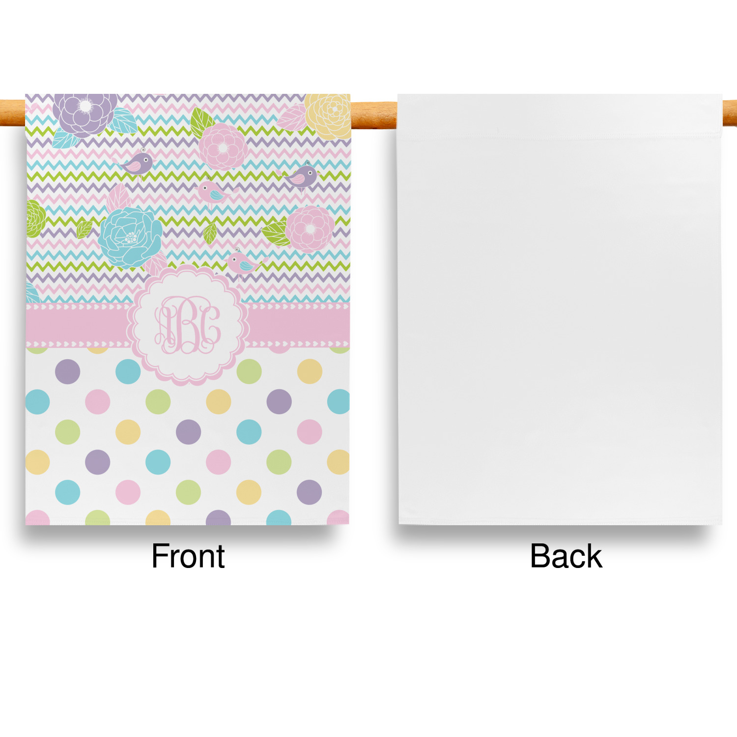 Looking for a classic girly girl design? You found it! It has everything that should please the girly girl. It has chevron, polka dots, flowers & birds along with an interlocking monogram and all done up in gorgeous pastel colors.