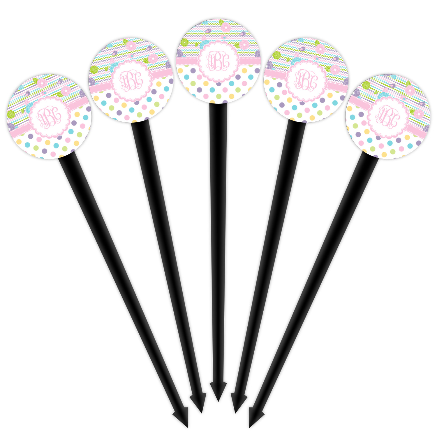 Our plastic cocktail picks have a round disc on top that is printed in full color with your event theme, colors, your logo, your photo, names, initials, monograms etc.