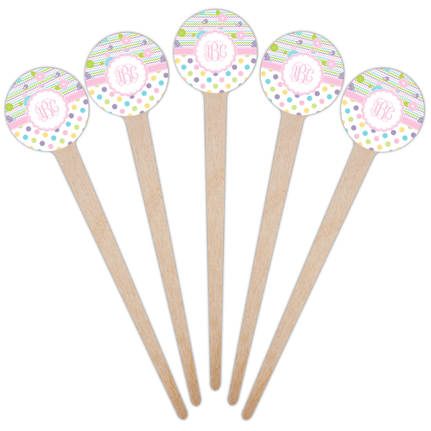 Shape + Symbol Designs for 4" Round Wooden Food Picks - Single-Sided