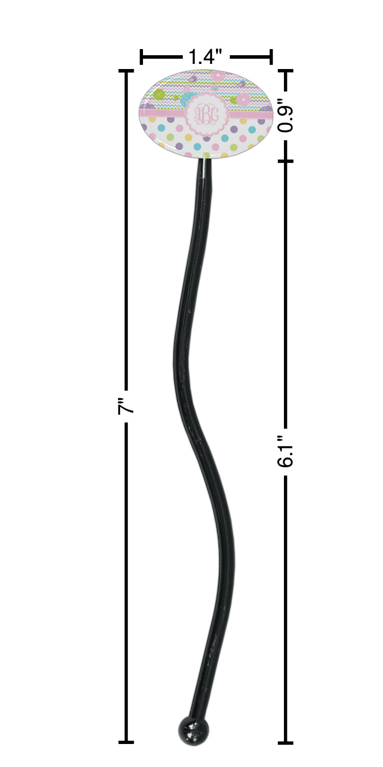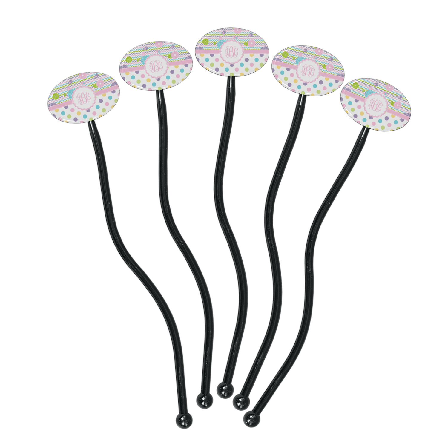 Shape + Symbol Designs for 7" Oval Plastic Stir Sticks - Black - Single-Sided