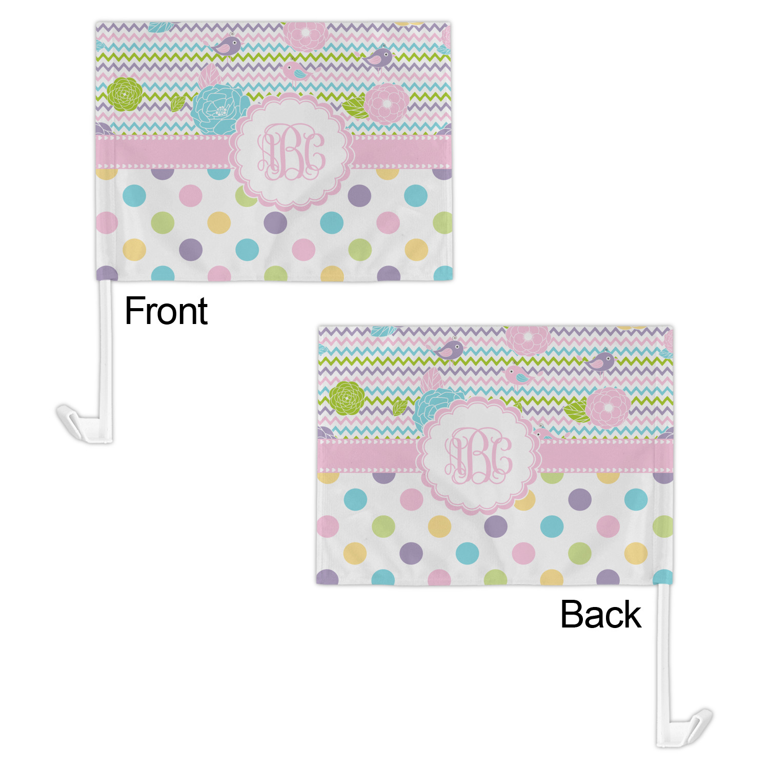 Our personalized flags are made from a durable, yet lightweight cloth that will proudly bear your logo or design of choice, while withstanding the outside elements. We have two size options - 8" x 11" and 11" x 15". Both come with a flag pole which includes a clip that secures the pole to the side window, whether it is rolled up or down. The flags are printed on both sides to display your design from all directions.