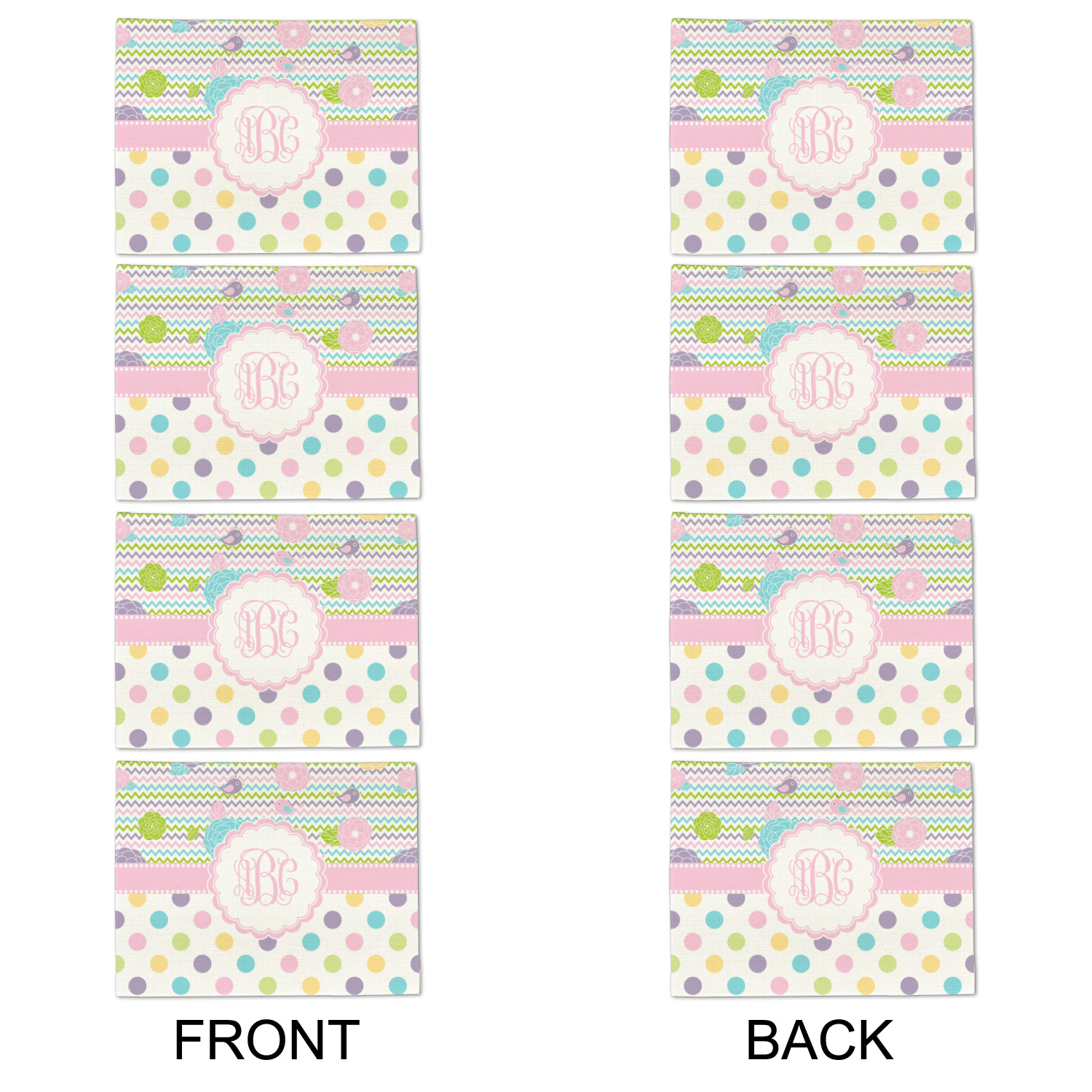 Looking for a classic girly girl design? You found it! It has everything that should please the girly girl. It has chevron, polka dots, flowers & birds along with an interlocking monogram and all done up in gorgeous pastel colors.