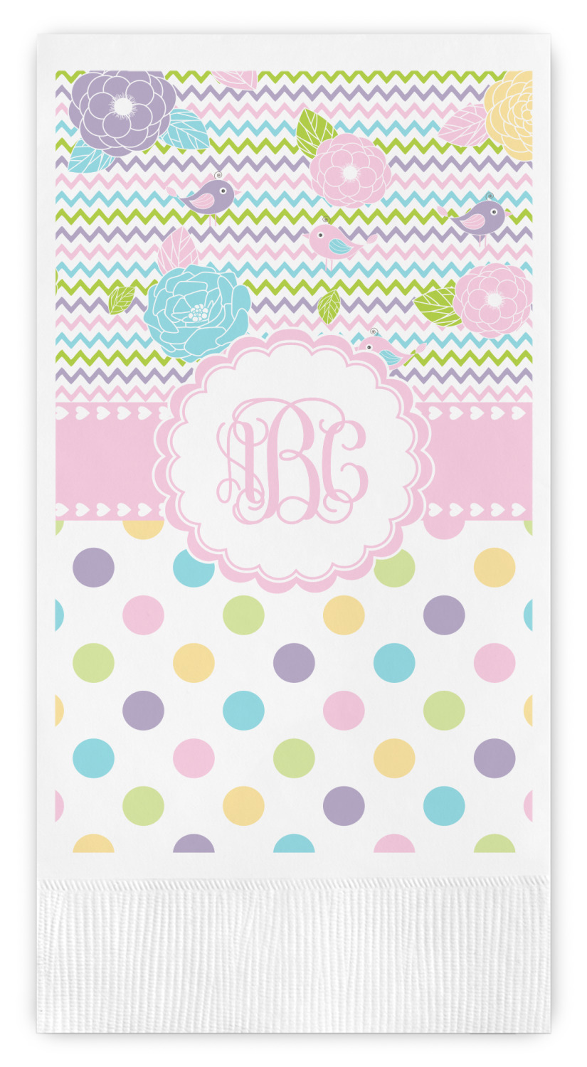 Looking for a classic girly girl design? You found it! It has everything that should please the girly girl. It has chevron, polka dots, flowers & birds along with an interlocking monogram and all done up in gorgeous pastel colors.