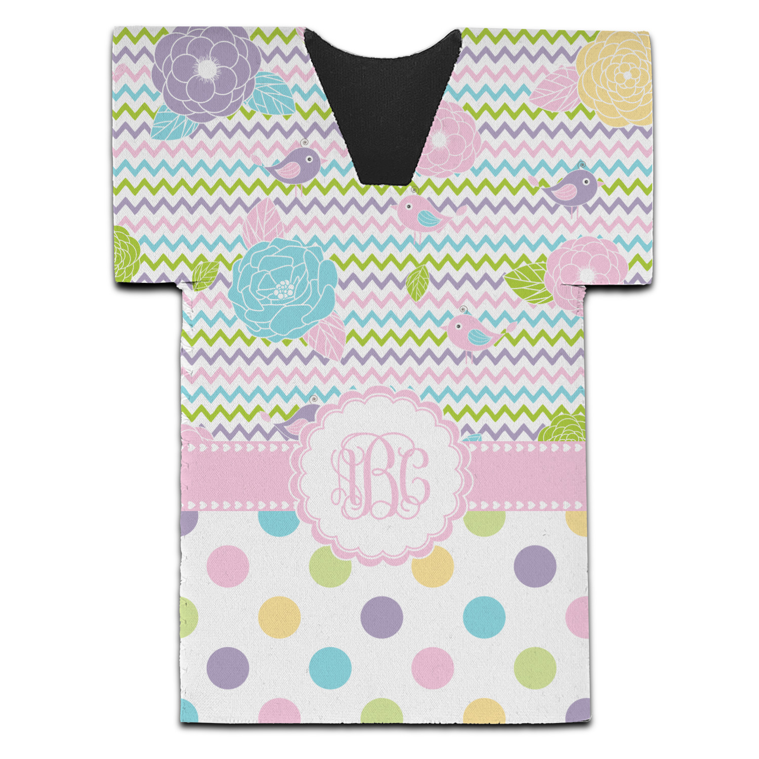 Looking for a classic girly girl design? You found it! It has everything that should please the girly girl. It has chevron, polka dots, flowers & birds along with an interlocking monogram and all done up in gorgeous pastel colors.