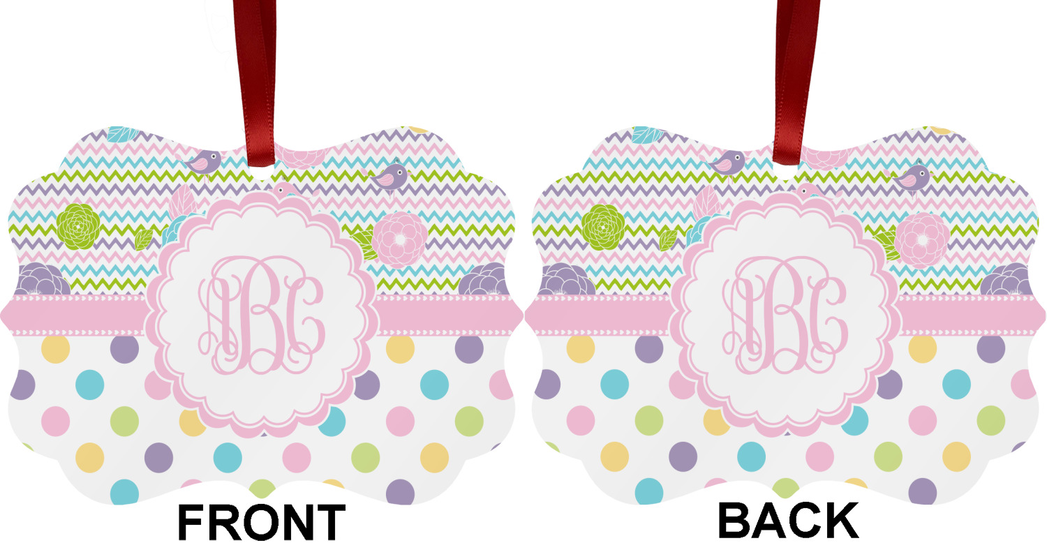 Looking for a classic girly girl design? You found it! It has everything that should please the girly girl. It has chevron, polka dots, flowers & birds along with an interlocking monogram and all done up in gorgeous pastel colors.