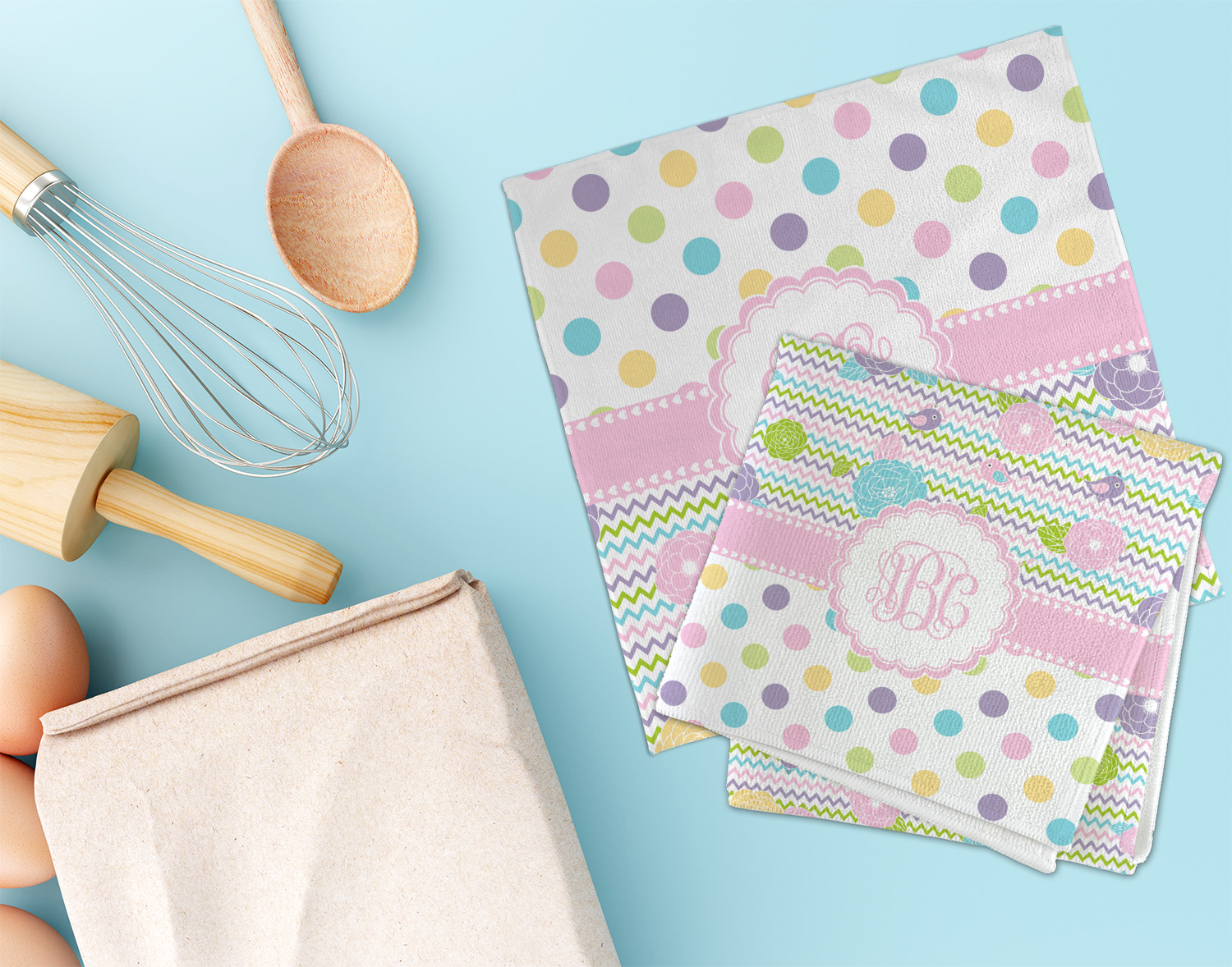 Looking for a classic girly girl design? You found it! It has everything that should please the girly girl. It has chevron, polka dots, flowers & birds along with an interlocking monogram and all done up in gorgeous pastel colors.