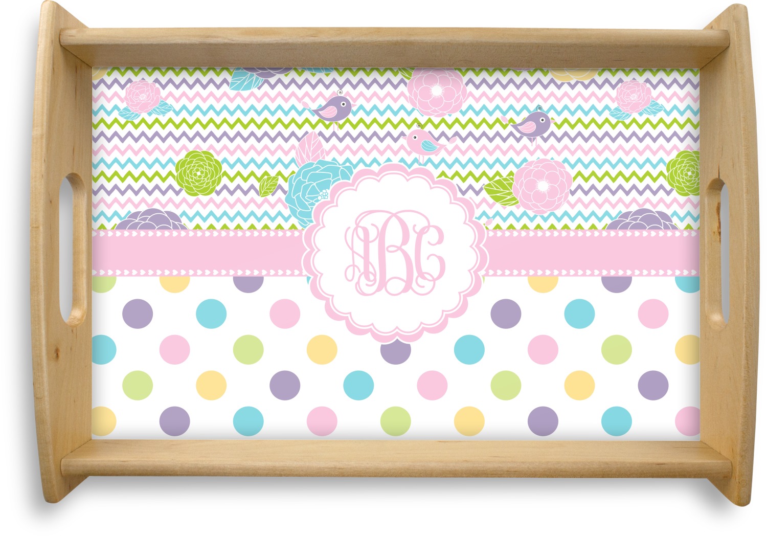 Looking for a classic girly girl design? You found it! It has everything that should please the girly girl. It has chevron, polka dots, flowers & birds along with an interlocking monogram and all done up in gorgeous pastel colors.