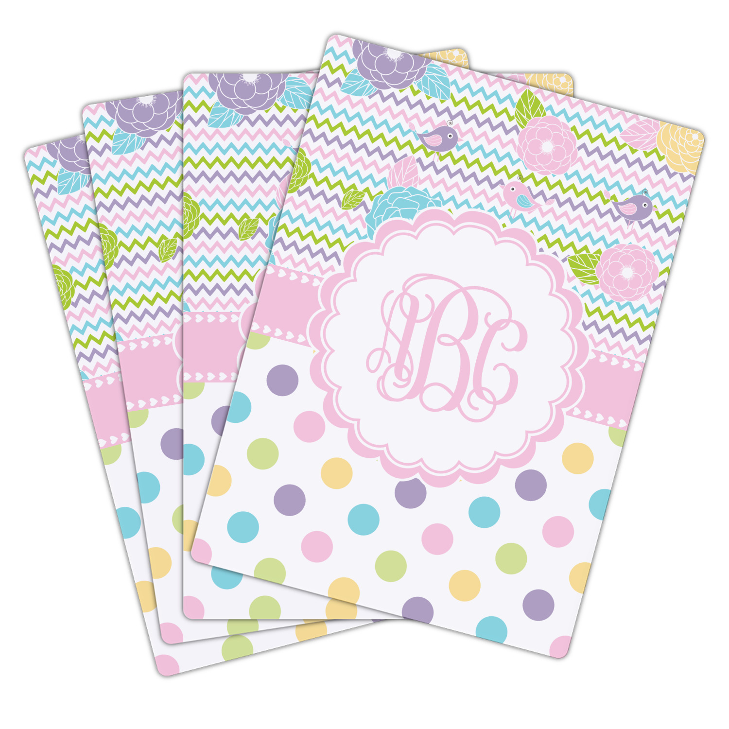 Looking for a classic girly girl design? You found it! It has everything that should please the girly girl. It has chevron, polka dots, flowers & birds along with an interlocking monogram and all done up in gorgeous pastel colors.