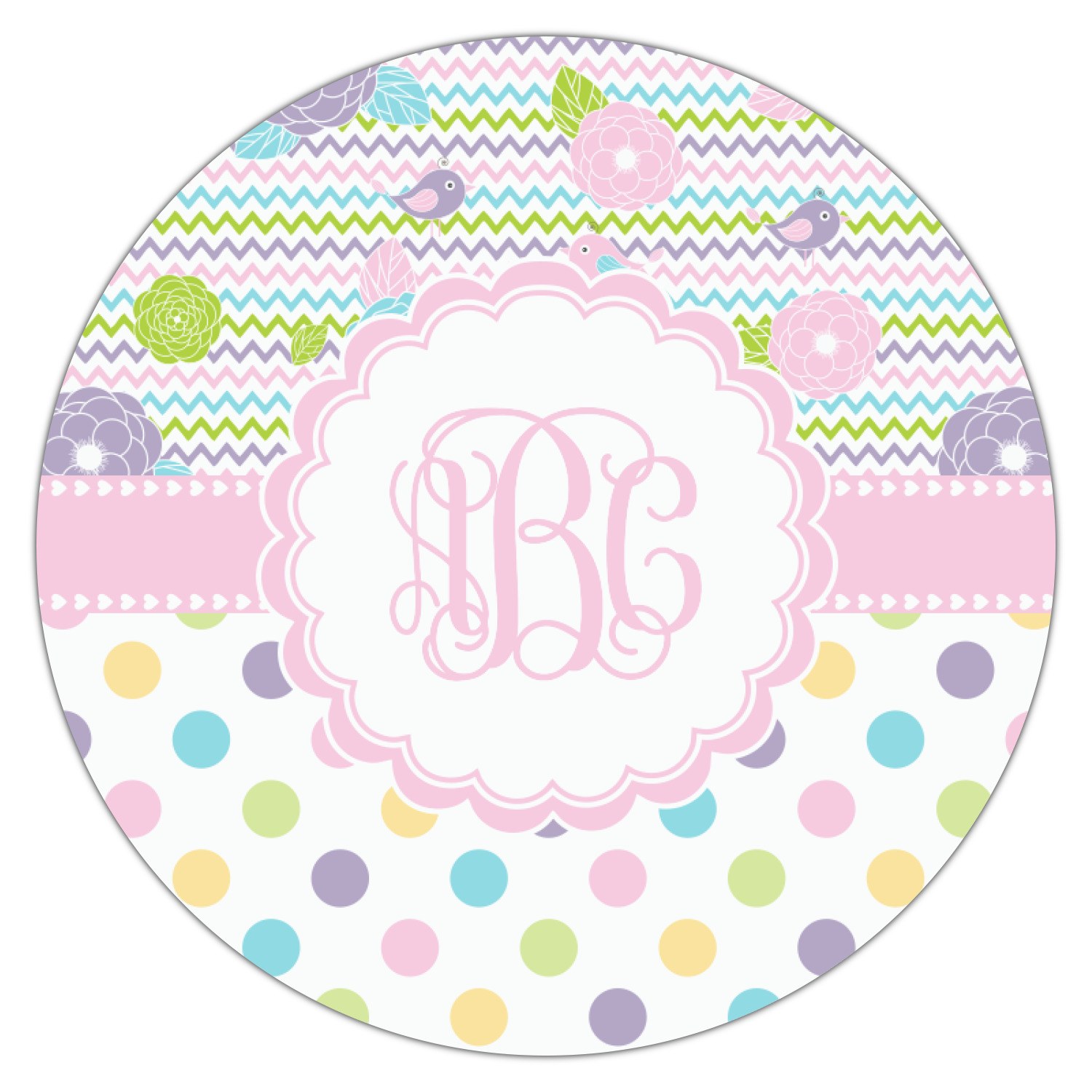 Looking for a classic girly girl design? You found it! It has everything that should please the girly girl. It has chevron, polka dots, flowers & birds along with an interlocking monogram and all done up in gorgeous pastel colors.