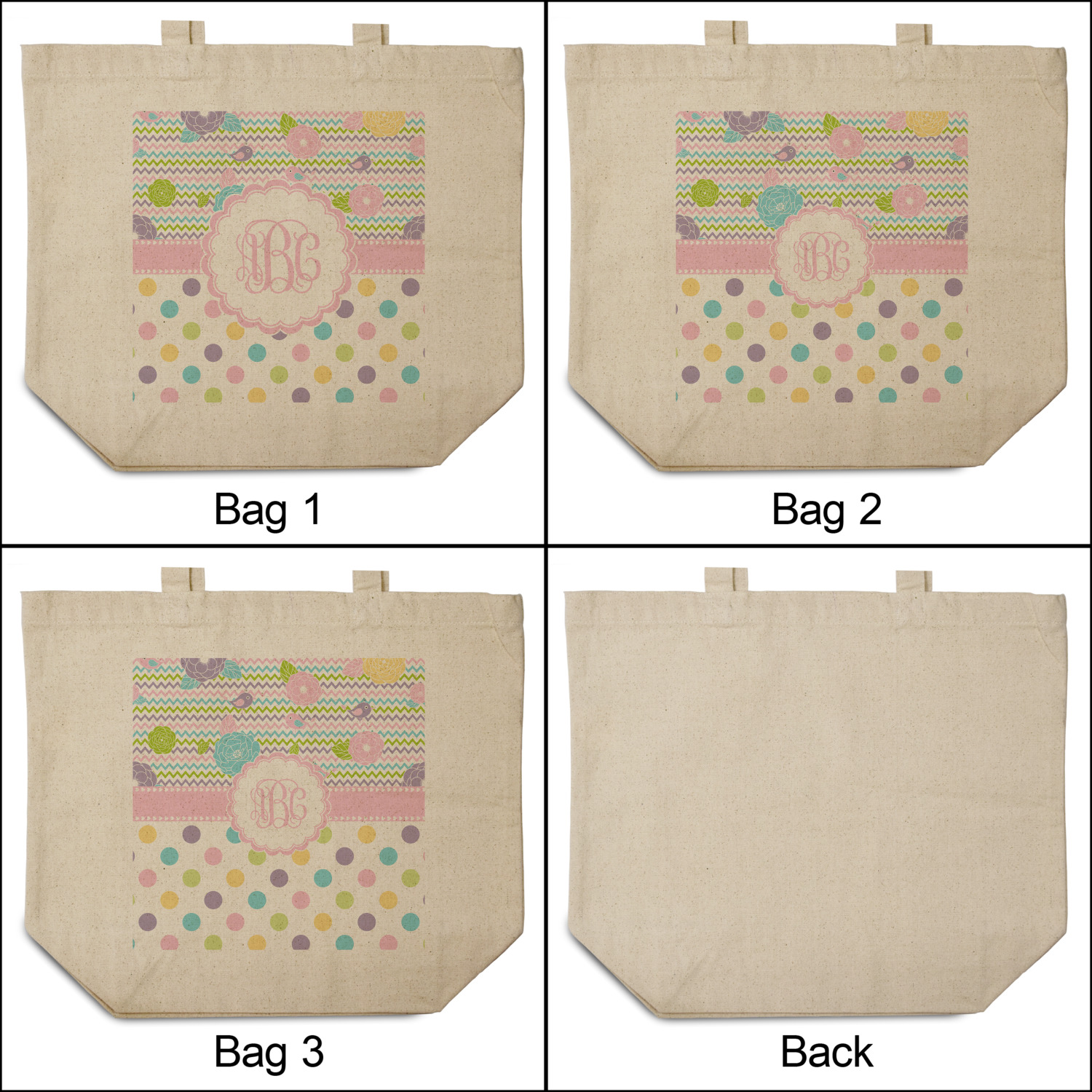 Looking for a classic girly girl design? You found it! It has everything that should please the girly girl. It has chevron, polka dots, flowers & birds along with an interlocking monogram and all done up in gorgeous pastel colors.
