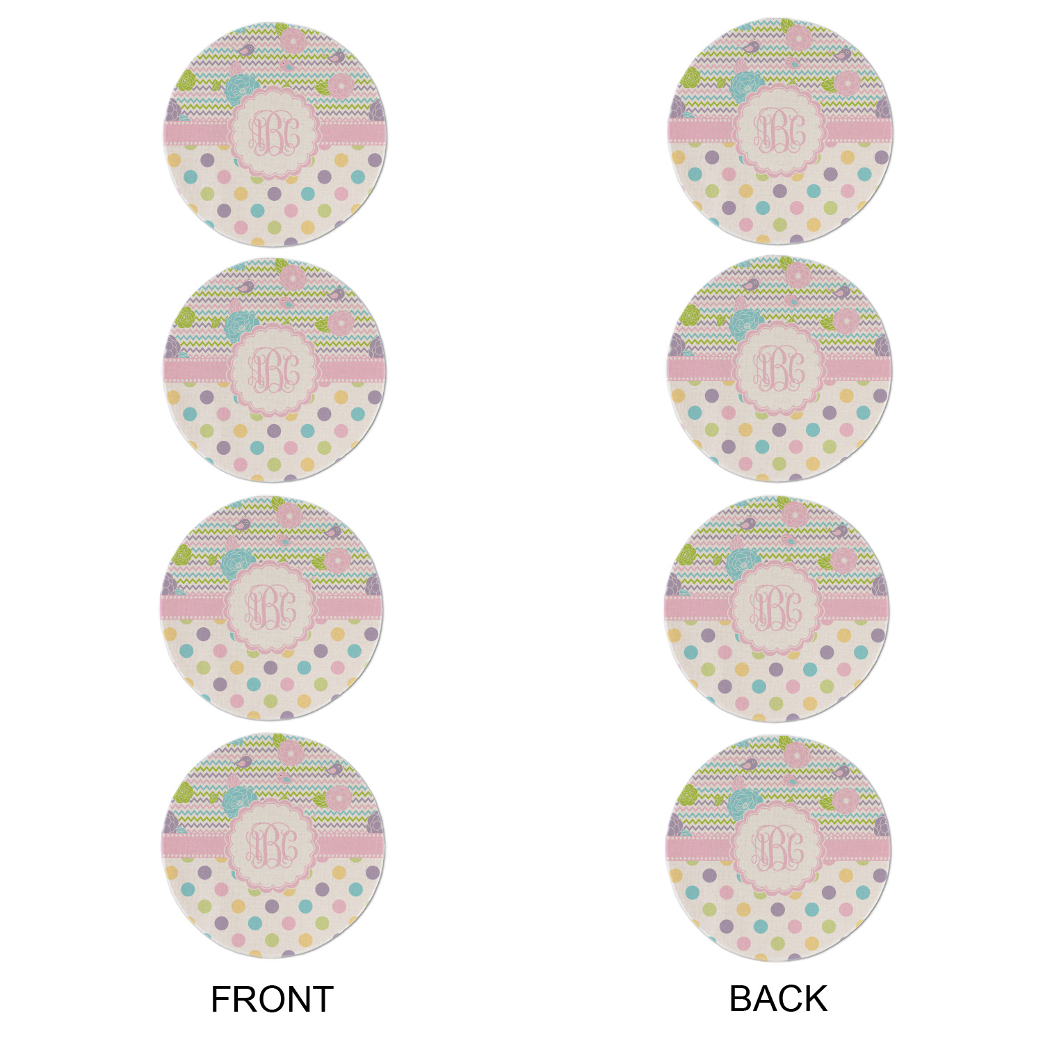 Looking for a classic girly girl design? You found it! It has everything that should please the girly girl. It has chevron, polka dots, flowers & birds along with an interlocking monogram and all done up in gorgeous pastel colors.