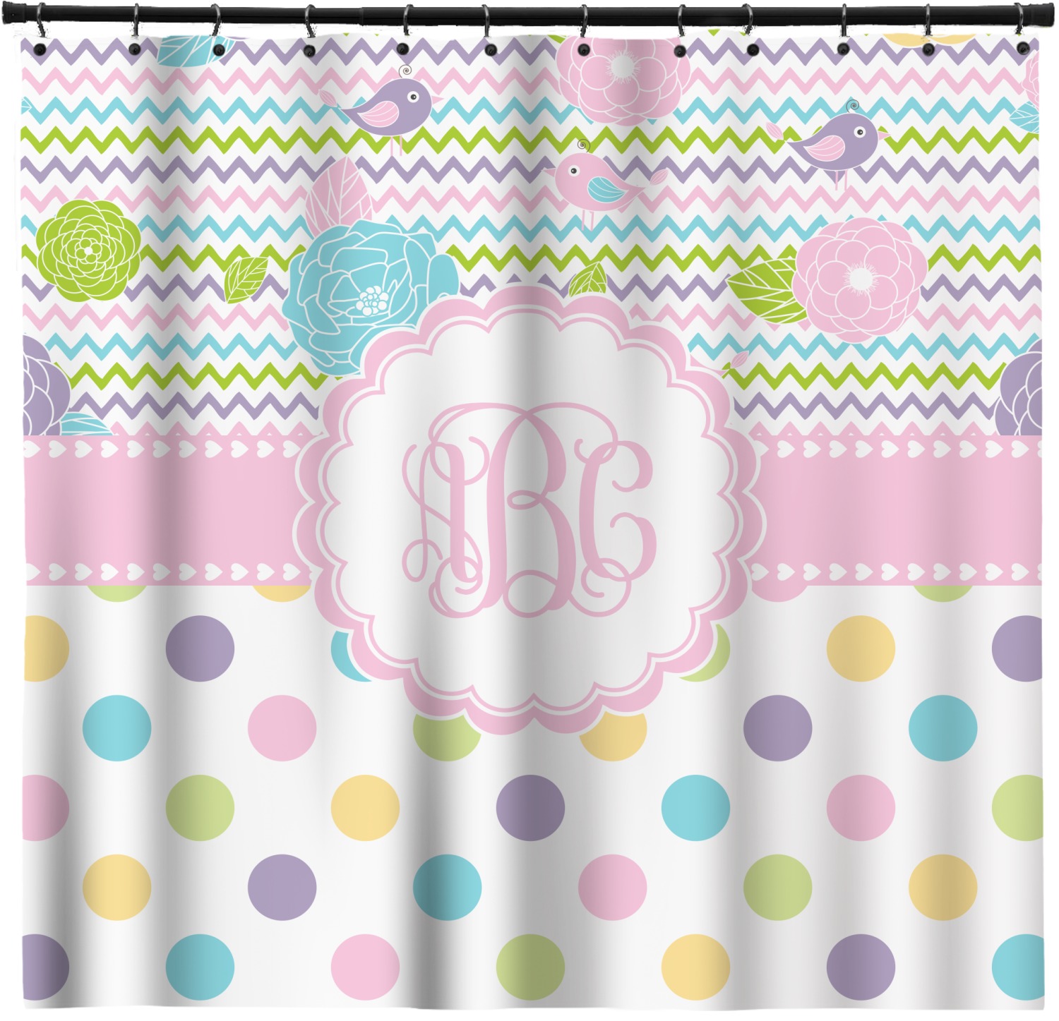 Looking for a classic girly girl design? You found it! It has everything that should please the girly girl. It has chevron, polka dots, flowers & birds along with an interlocking monogram and all done up in gorgeous pastel colors.