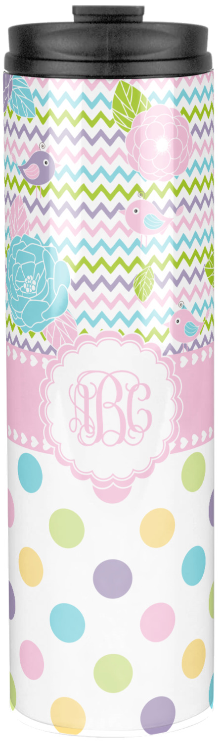 Looking for a classic girly girl design? You found it! It has everything that should please the girly girl. It has chevron, polka dots, flowers & birds along with an interlocking monogram and all done up in gorgeous pastel colors.