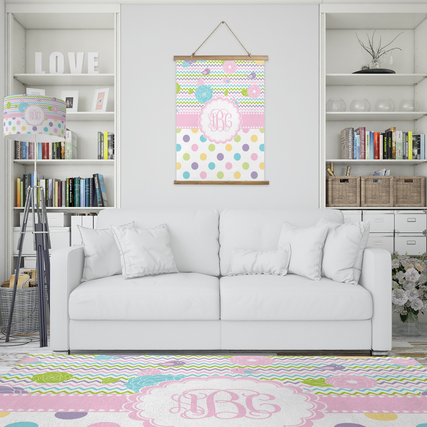 Looking for a classic girly girl design? You found it! It has everything that should please the girly girl. It has chevron, polka dots, flowers & birds along with an interlocking monogram and all done up in gorgeous pastel colors.